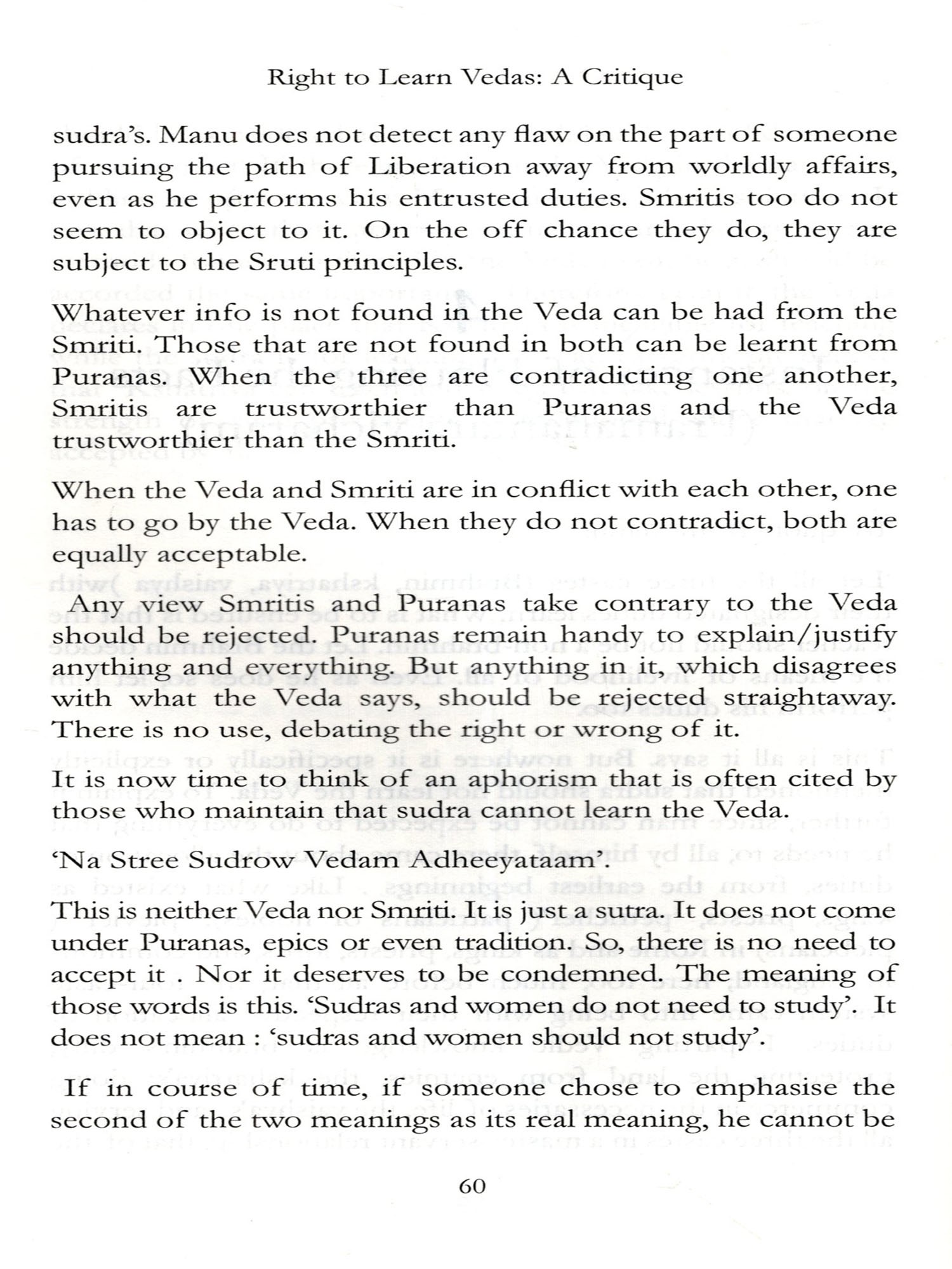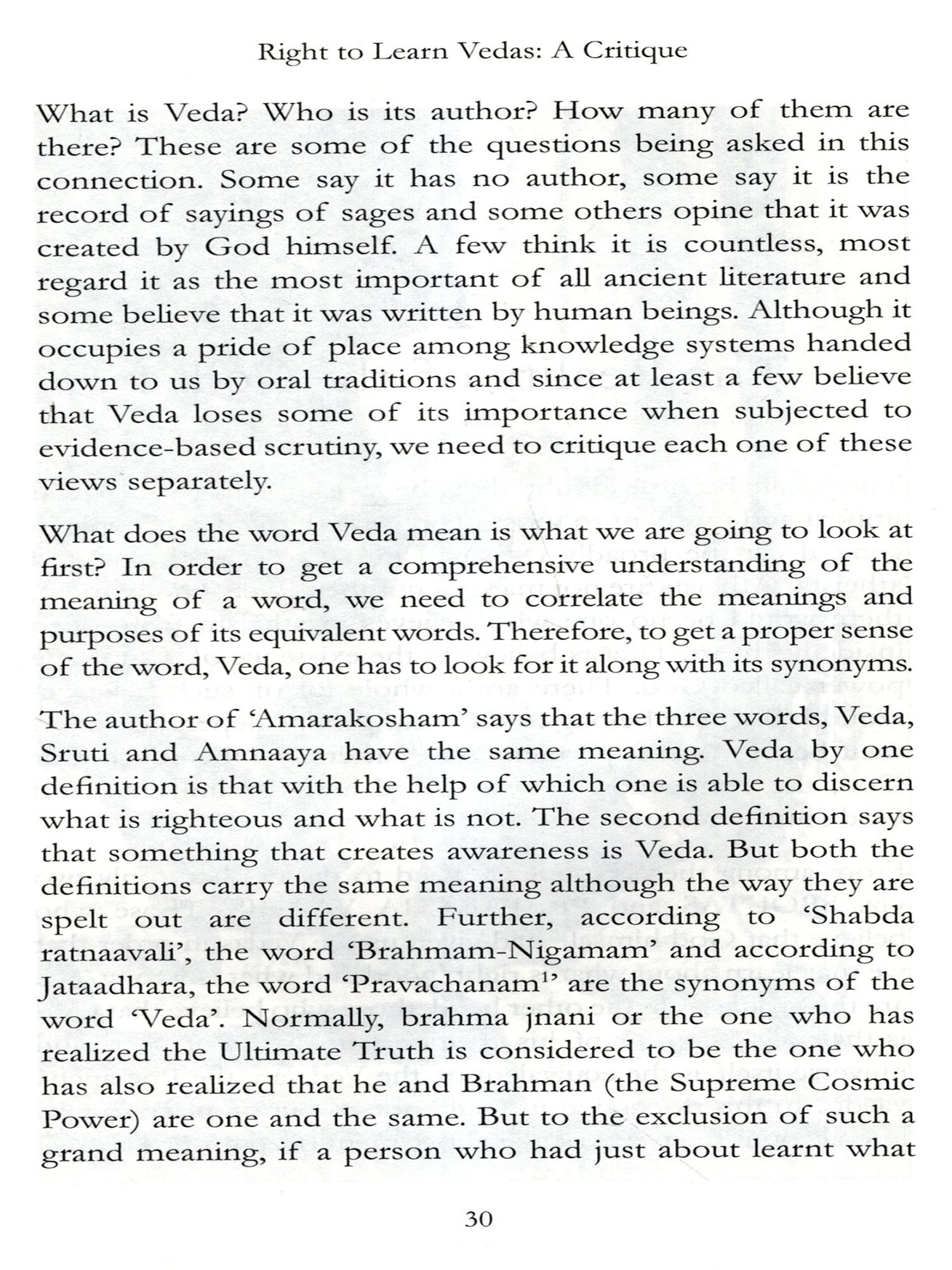 The broad-minded tolerance, critical acumen sympathy with all created beings, and the deep and vast learning of the Swamikal are apparent even in this short work. I learn that some twenty-five years ago, the Swamikal planned a great work on the Vedas and wrote a very large part of it. The major portion of the manuscripts has, like so many of the works of His Holiness been dispersed to the winds. The small book now published is all that has been garnered together by the diligence of Swamikal's disciples out of the bulky manuscripts dealing with many topics connected with the Vedas.