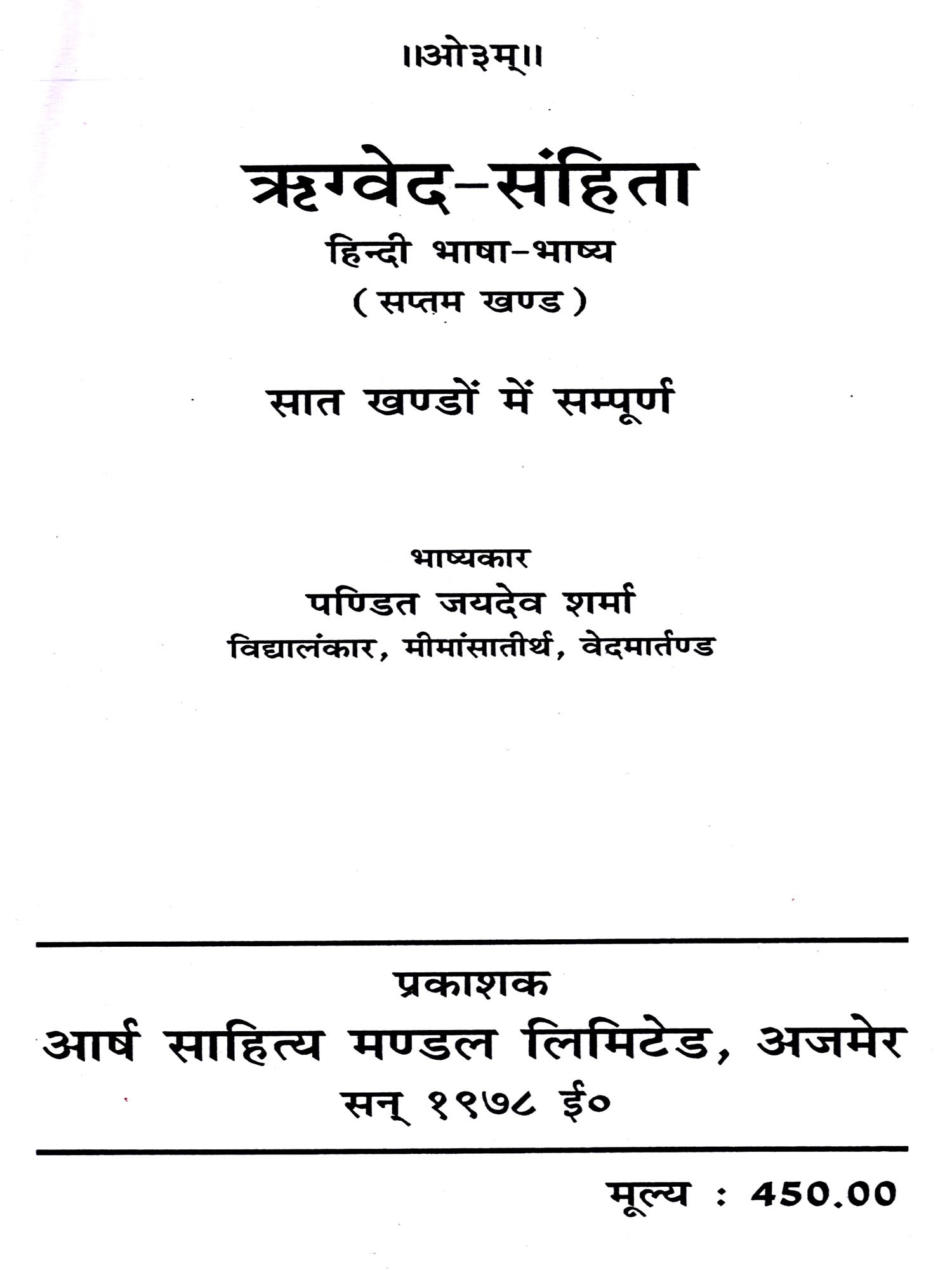 Publisher: ARYA SAHITYA MANDAL LTD., AJMER