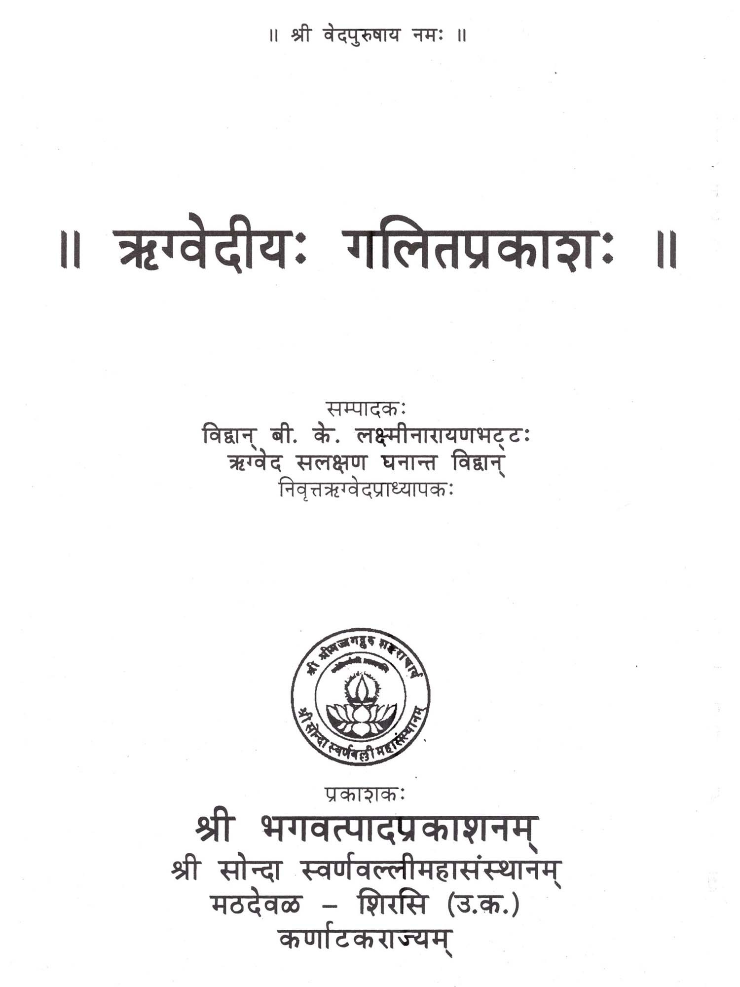 ऋग्वेदीयः गलितप्रकाशः Rigvediya Galita Prakashah