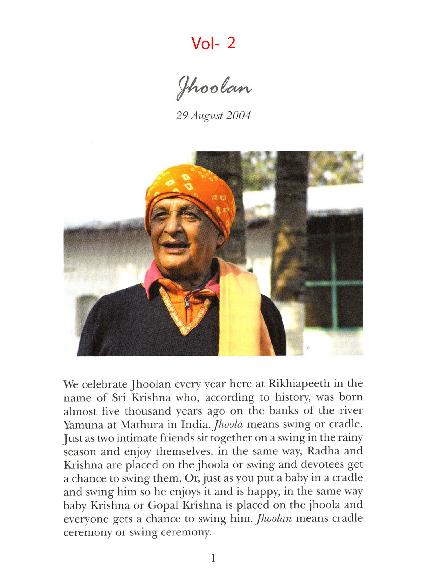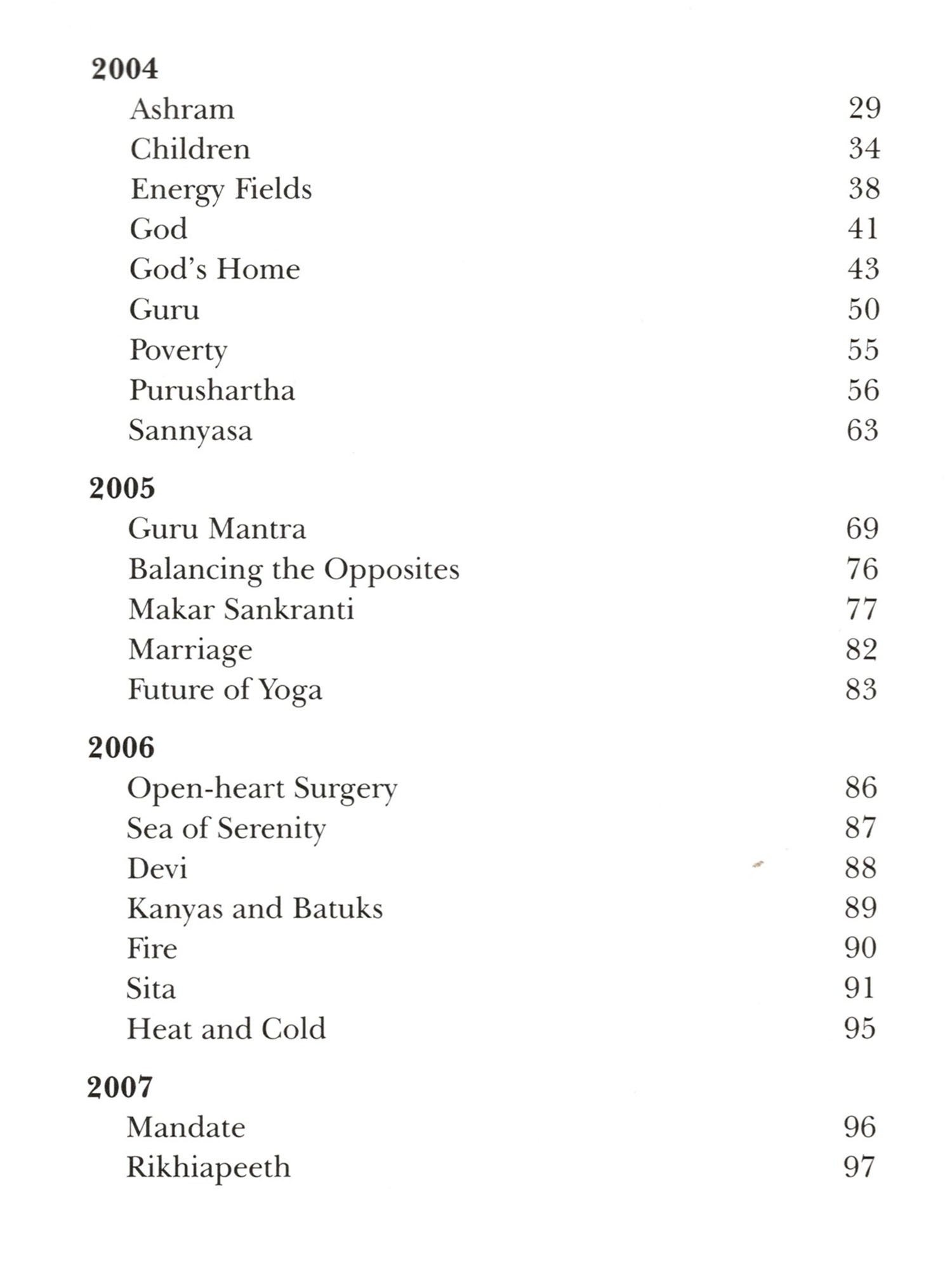 The satsangs exemplify Sri Swamiji's liberal, compassionate and practical views on a broad range of subjects, including ashram life, guru-disciple relationship, sannyasa, the Cosmic Mother, kanya worship, anna daan, children, awakening of consciousness, yoga, poverty, purushartha, destiny, opening the heart, and the future vision of Rikhiapeeth. Rikhiapeeth Satsangs provides fresh impetus and inspiration for all individuals seeking guidance on how to meet the needs of the modern age.