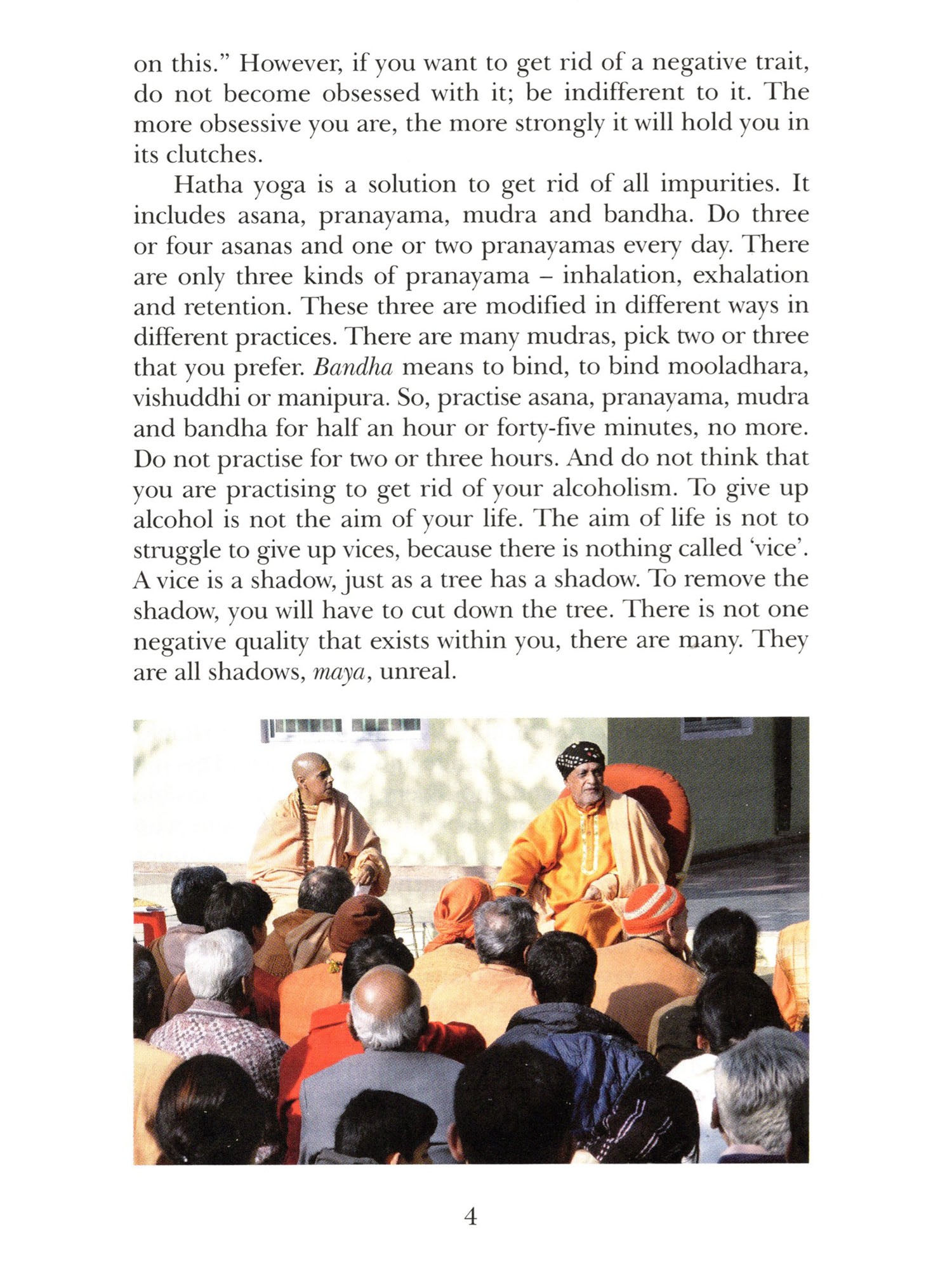 Rikhiapeeth Satsangs 4 is a collection of talks given by Sri Swamiji in 1997 to an Indian audience. He speaks on a wide range of subjects, including the sannyasa tradition, Bhakti, yoga, dhyana, mind management, seva, health, village development, education, emancipation of women, ancient and modern history, science, social systems and economics. Translated from the original Hindi, Sri Swamiji's liberal, compassionate and practical views provide inspiration and fresh insights to all individuals seeking expansion of mind.