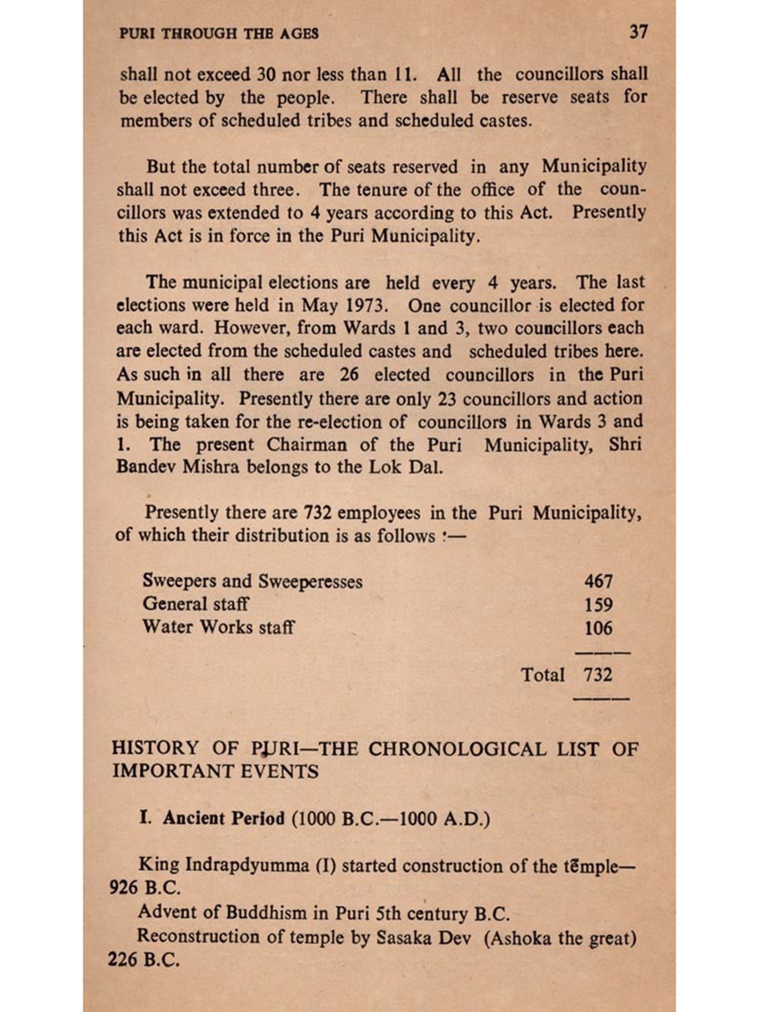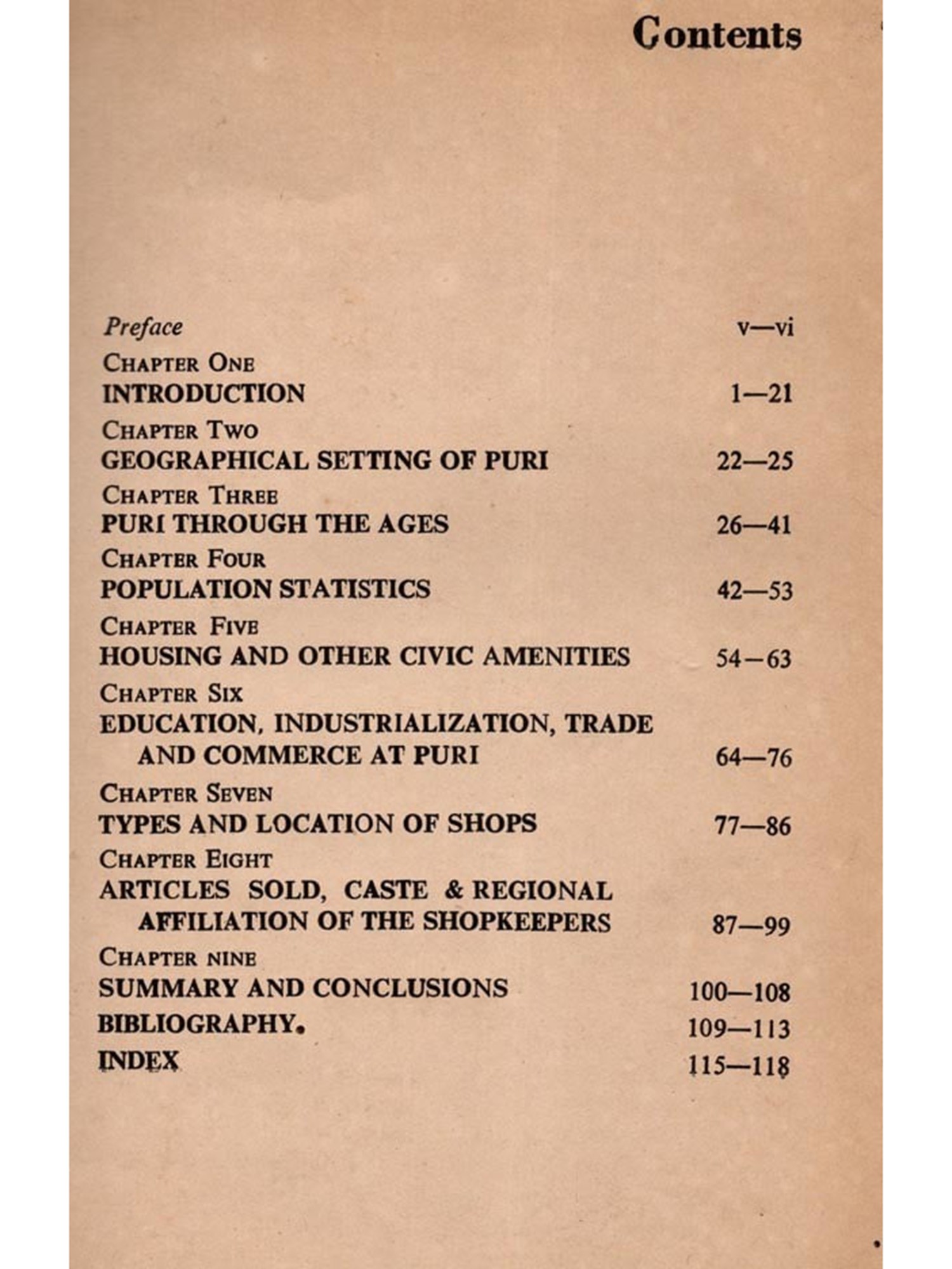 While carrying out field work at Puri as well as analysing the field data at Ranchi, I have got helps and encouragements from a large number of persons and institutions. First of all, 1 express my deep sense of gratitude and gratefulness to Dr. L.P. Vidyarthi, University Professor and Head, Department of Anthropology, Ranchi University, Ranchi and President of the Xth World Congress of Anthropological and Ethnological Sciences, who not only provided me a golden opportunity to study the urban dimension of this traditional city, but also took a great pain to visit us directly in the field while returning from Cambridge after attending an International Conference on Pre-Farming and Marginal Tribes. His visit to the field and providing guidance at the spot, gave us multiple enthusiasm to I am also thankful to all complete the research assignment. the research students of Puri group, however, special thanks are due to Miss Neelam Taneja M.Sc. (Gold Medalist), Miss Surinder Khurana M.Sc., Mr. Jaiprakash M.Sc., B.L. (now advocate) and Mr. Ranjit Singh M.Sc., who were closely associated with the present work. My colleagues Dr. K. Ν. Sahay, Dr. Narayan Mishra, Dr. V.S. Upadhyay and Dr. A. N. Sandhwar have been very helpful at the time of analysing the field data and have given their comments and suggestions during seminars when the findings of this study had been presented. At Puri, Padmashri Pandit Ratha, Pandit Gopi Nath Mishra, the Veda pathi of the Mukti Mandap, Mr. P. N. Sinha and other officials of the Puri Municipality, Mr. Kanungo, Sub-Inspector of police and officer-in-charge of the town thana and other police officials etc., all helped us and therefore, I am highly obliged to them.