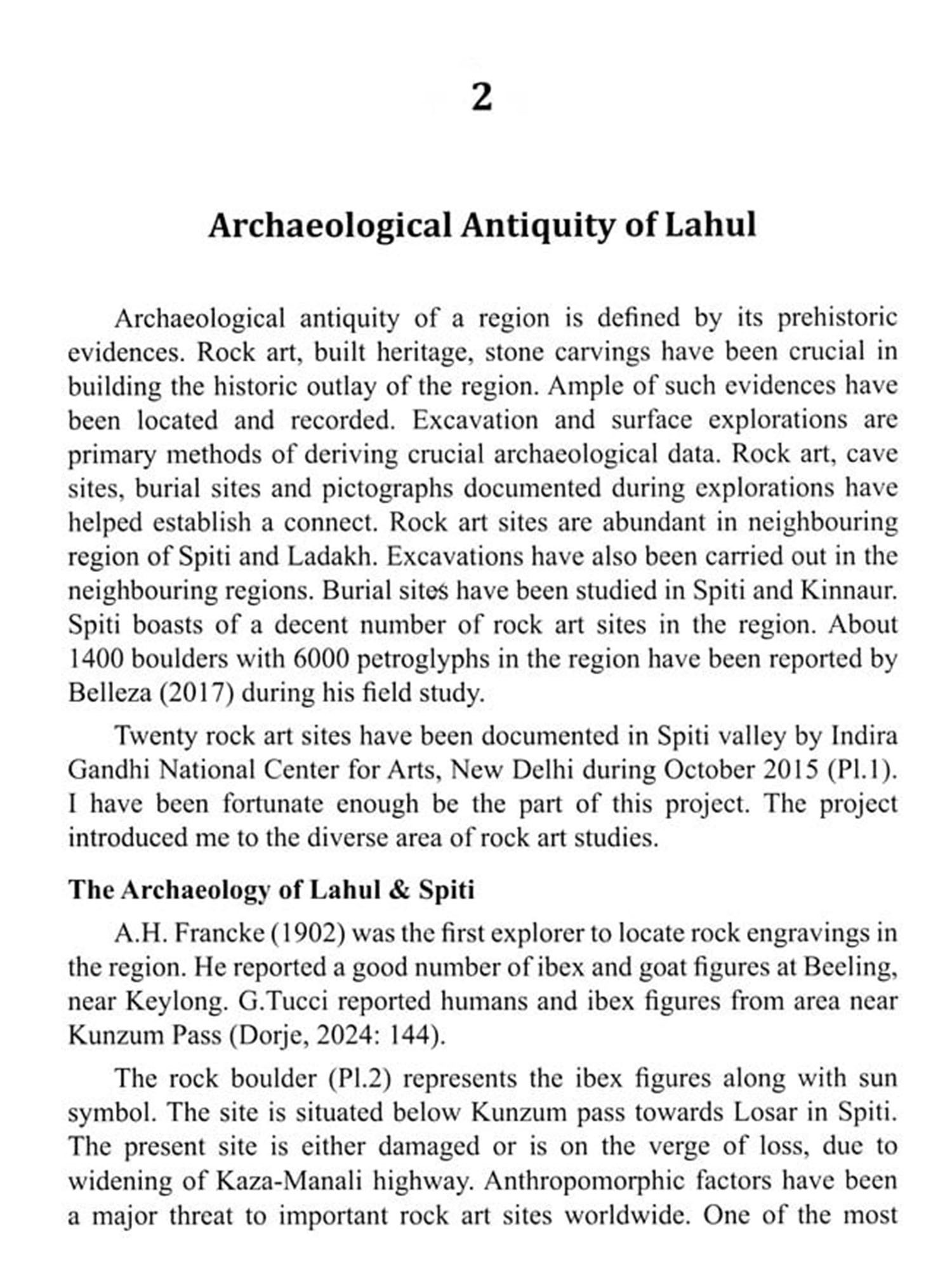 A new rock art site in Lahul has been reported in the book. With an attempt to avoid subjective bias an interpretative analysis of the rock art depictions has been carried out. The book aims to draw back the antiquity of the region by bridging gaps in the broader schema of ancient practice associated to hunting, barter-trade, migration, and cultural exchange. Connecting the land and the people to larger web of historical interactions, and promote new findings and enrich better understanding of prehistoric cultural and economic networks.