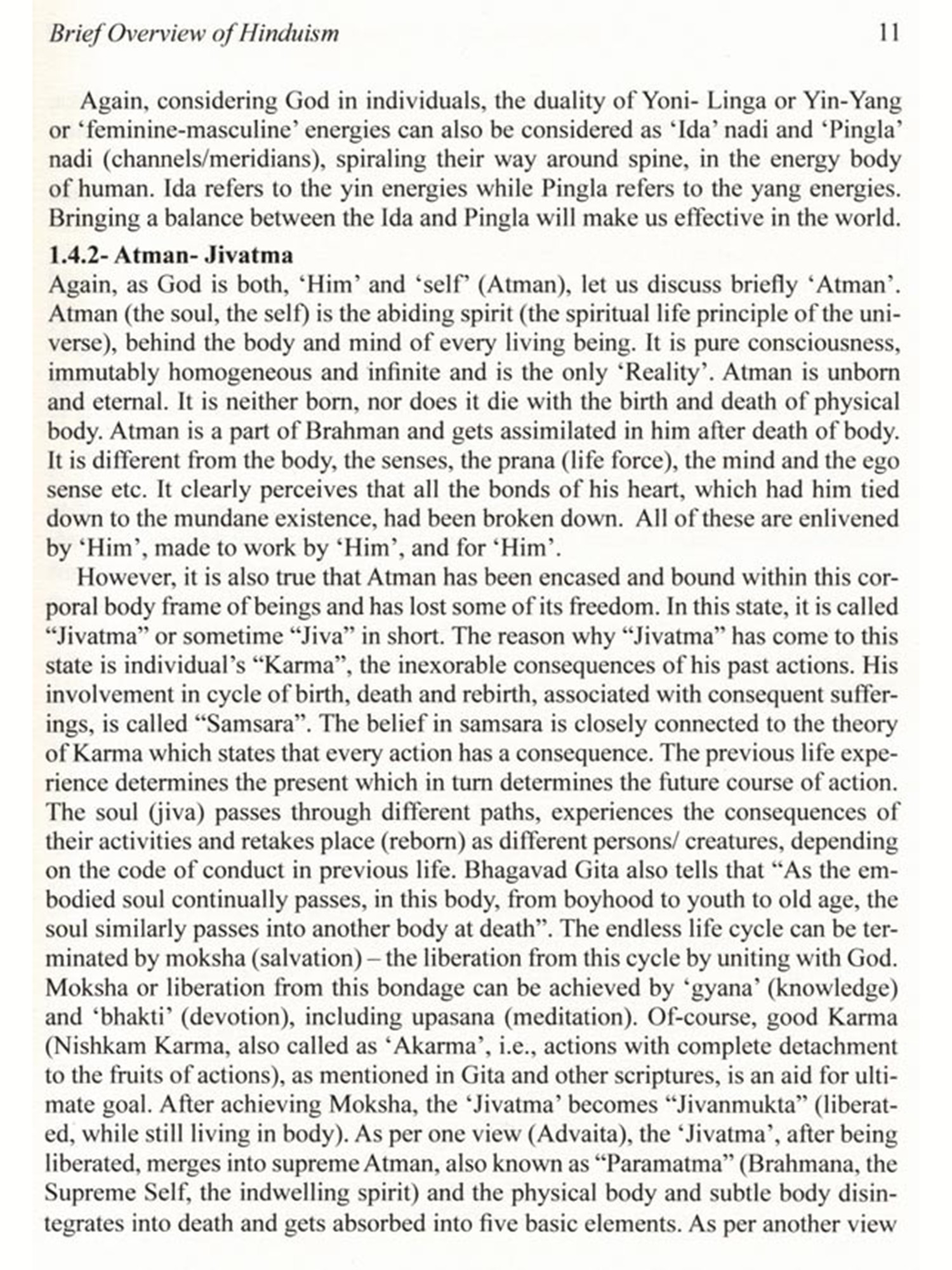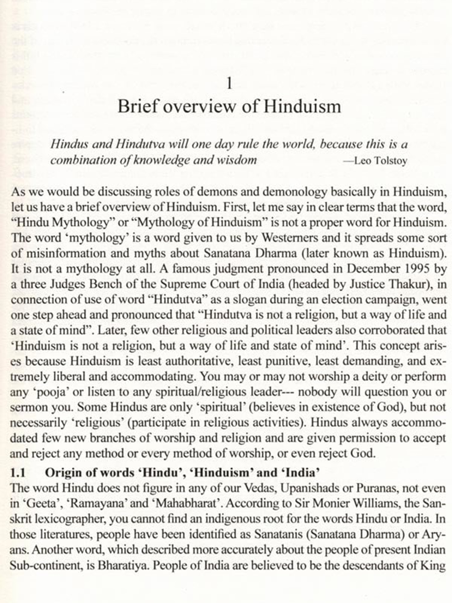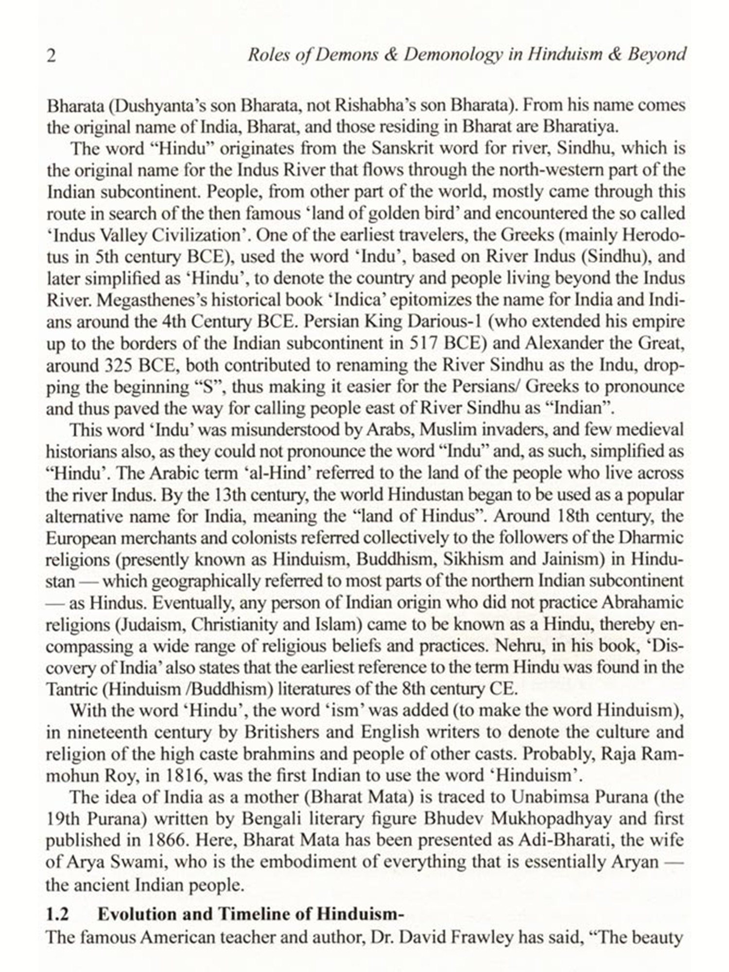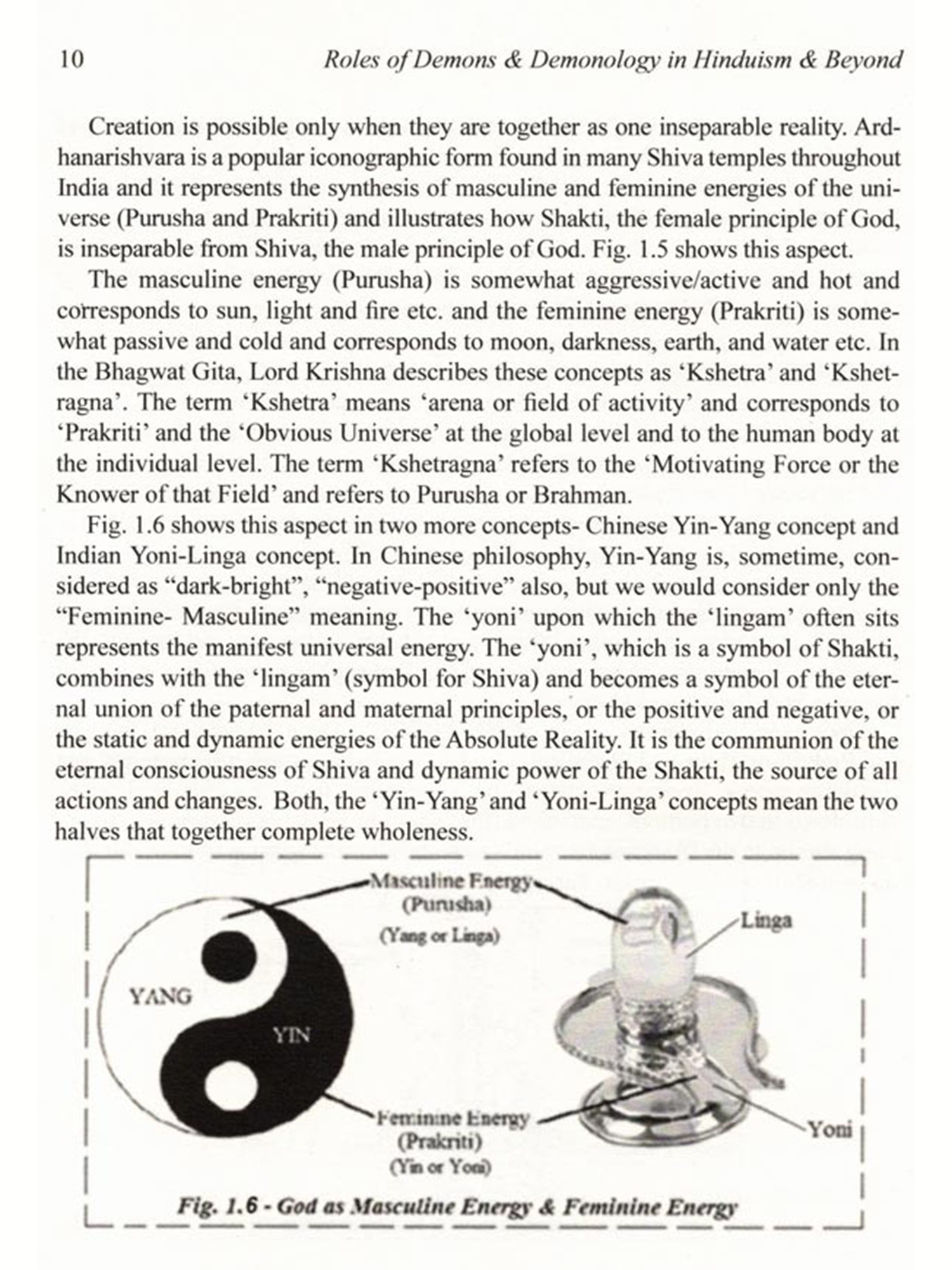 The concept of demon in Hinduism is quite different from the concept of demon in Christianity and many other cultures. Unlike Christianity and few other reli-gions, Hinduism hardly ever blames the demons for the corruption of mankind. The demon plays the character of a villain in the psychodrama of salvation with the di-vine avatar as the hero. In Hinduism, there is no concept of evil, as it is all governed by 'Law of Karma' and demons are not considered evil. The demons are rather a positive concept moving in the wrong direction, leading to demerit and bondage. While Western view is that God creates demon (Satan etc.) against his will, Hin-duism considers that God creates demons willingly, and also out of necessity. The book vividly illustrates what are the types of demon (both, external and internal), why and how demons were created (both, external and internal) and why and how demons had to be eliminated.