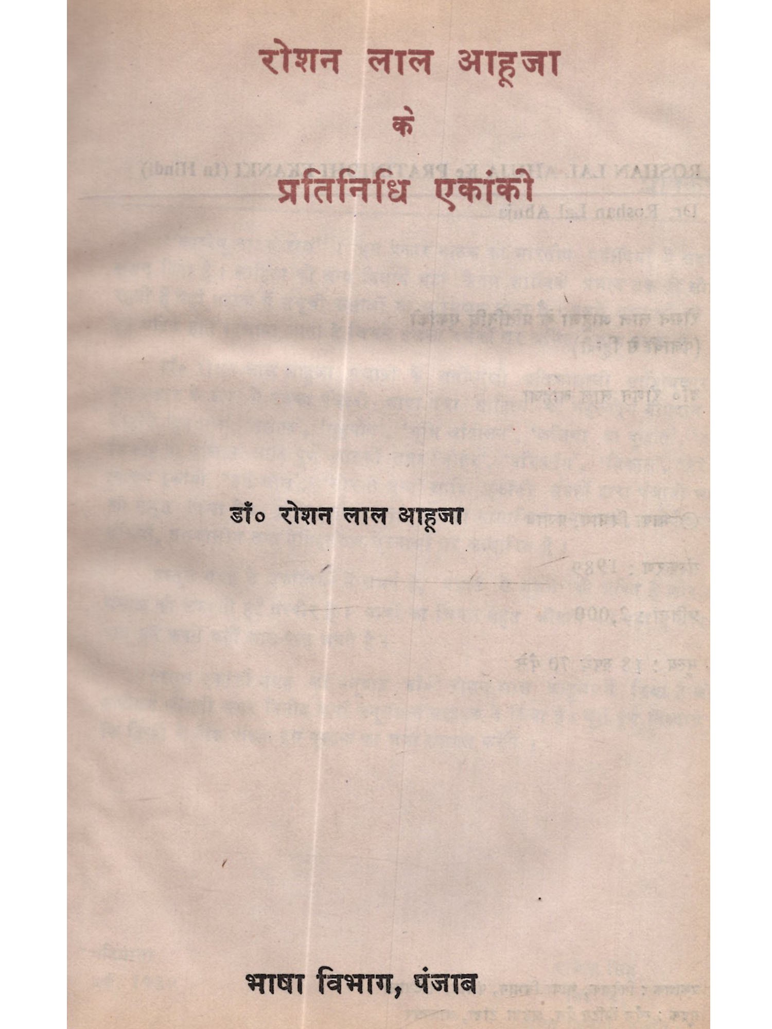 रोशन लाल आहूजा के प्रतिनिधि एकांकी: Rosana Lala Ahuja Ke Pratinidhi Ekankī (An old and Rare Book)