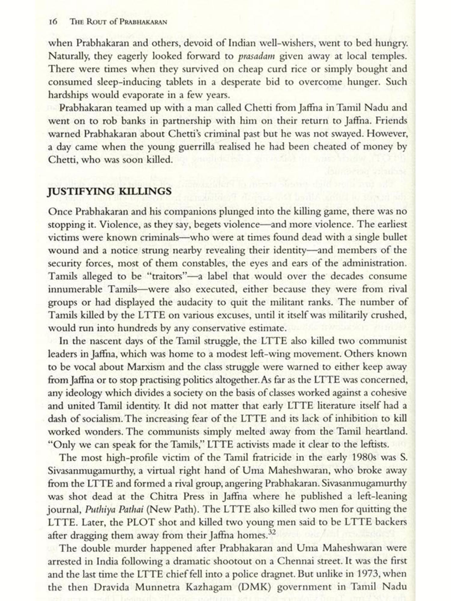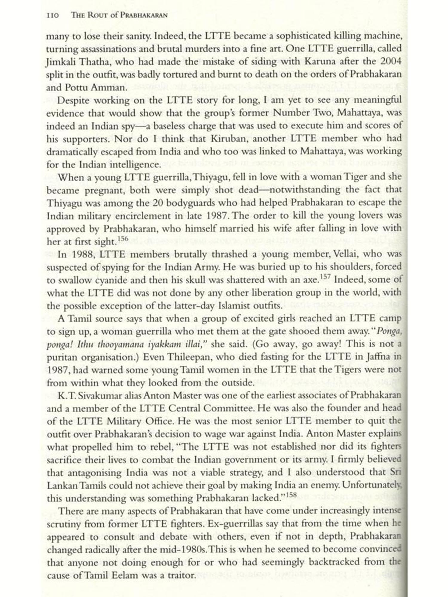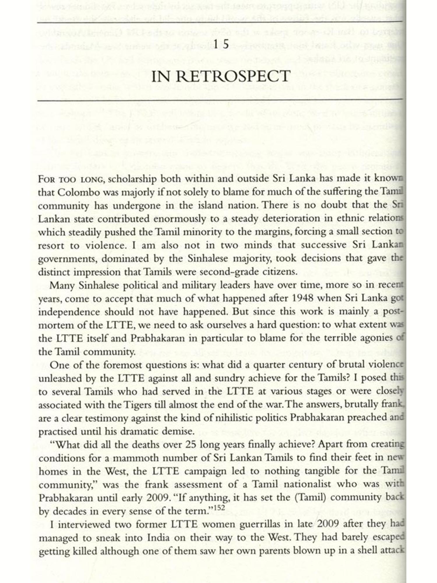 This is a brutally frank post-mortem of the nihilist politics that led to the bloody and brutal end of the LTTE's founder, Velupillai Prabhakaran, in May 2009, bringing a quarter century of armed conflict to a close.