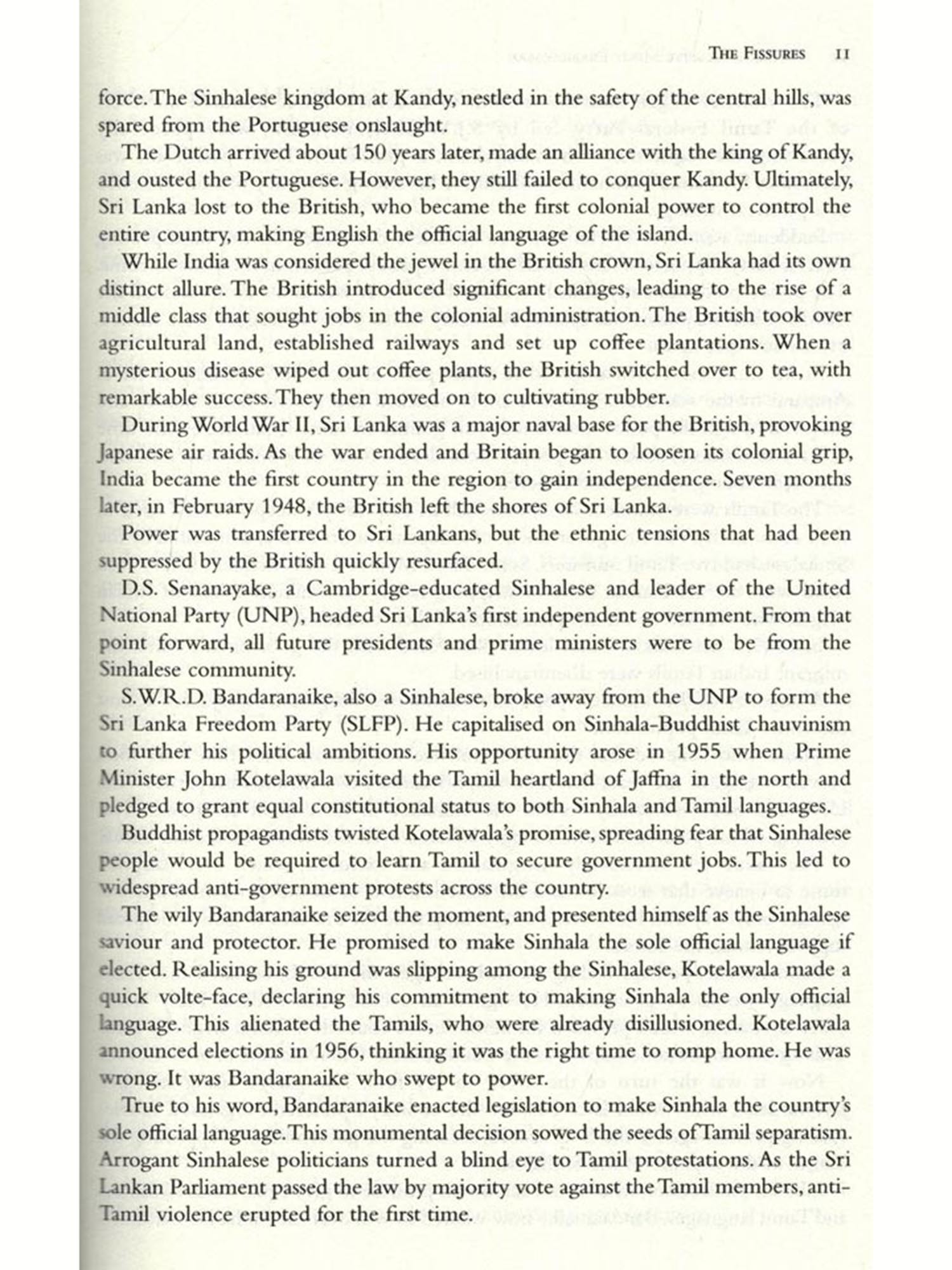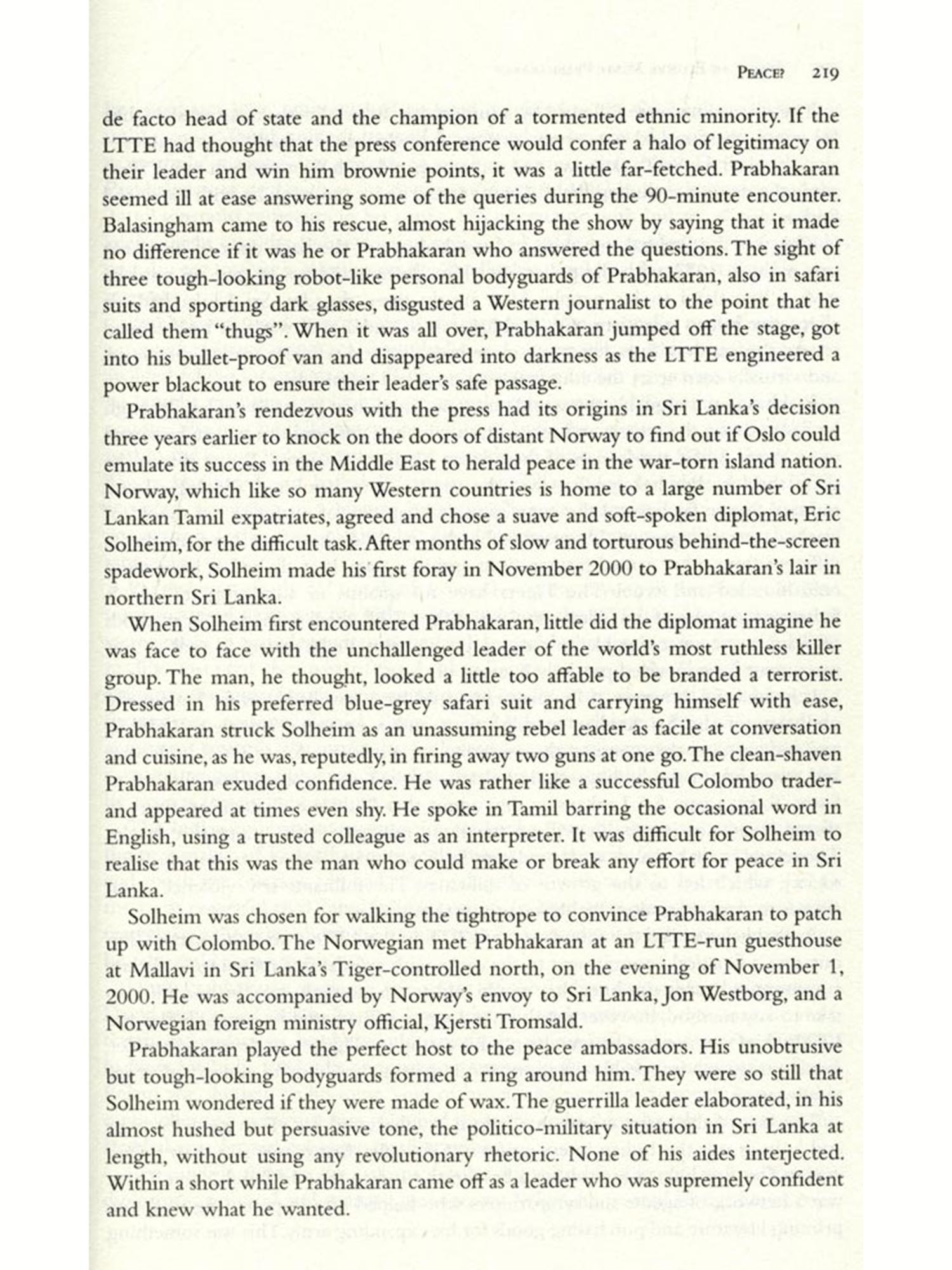 This book-his fourth on the subject is the outcome of countless interactions with Tamil guerrillas, military generals, diplomats, policymakers, and others in the Sri Lankan government and beyond.