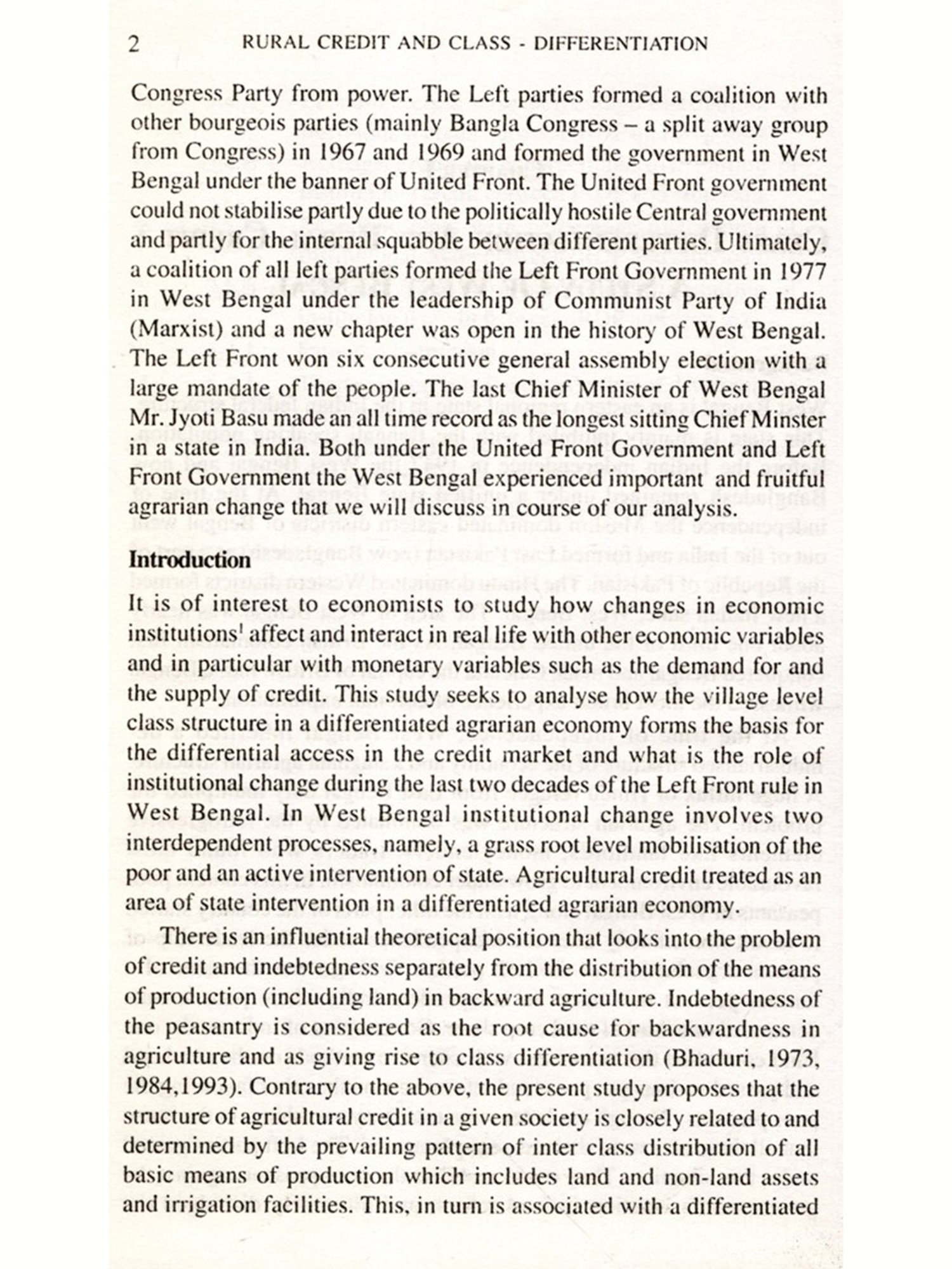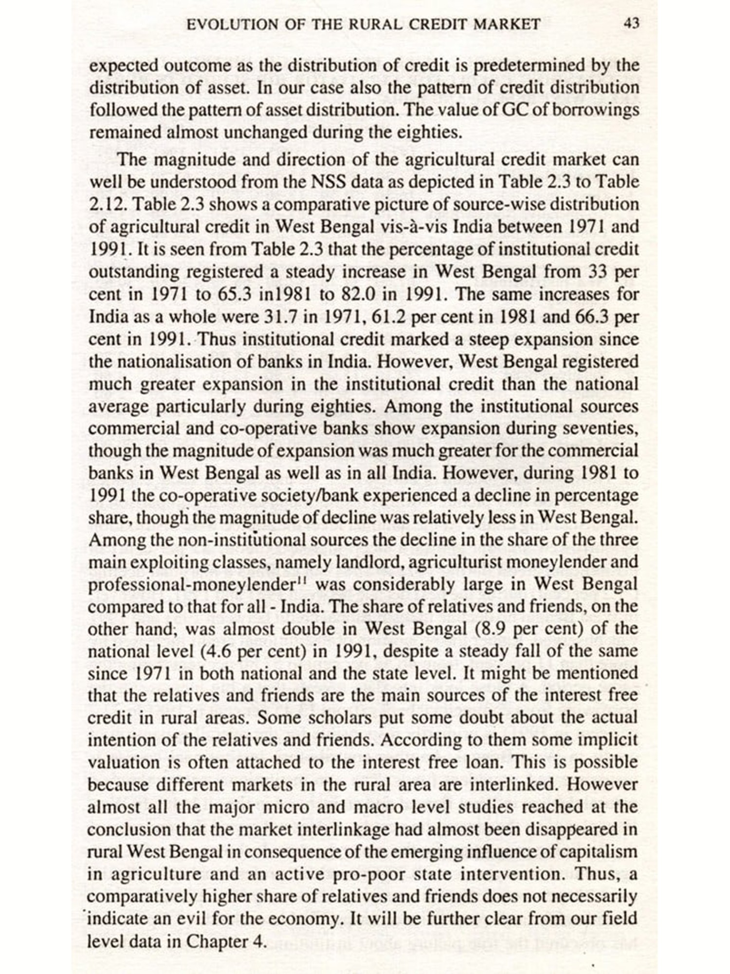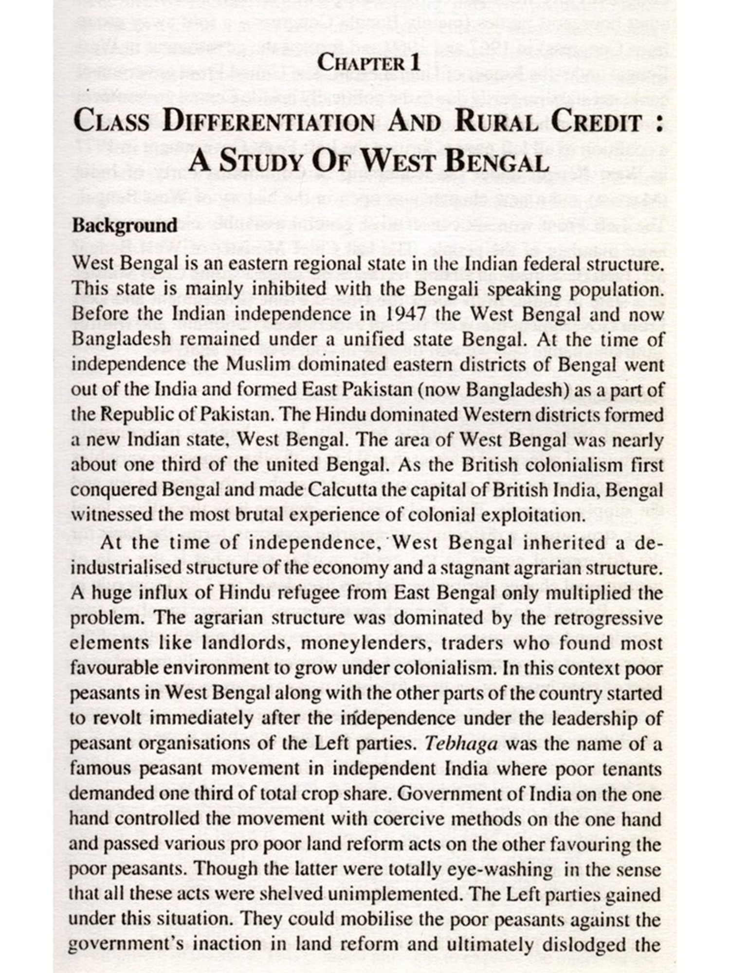 New Delhi. The presence of Utsa Patnaik as the thesis supervisor in every step of this work with her deep insights and thoroughness had made it possible for me to successfully complete this research. A substantial revision of the original thesis was done at the Queen Elizabeth House, University of Oxford, where I received a fantastic work environment under the South Asian Visiting Scholar Programine. During that period I received the benefit of extensive discussions and written comments from Barbara Harriss-White. Amiya Kumar Bagchi and Madhura Swaminathan also enriched this work with thorough comments on original thesis. Falso benefited from discussions at several occasions with Prabhat Patnaik, Abhijit Sen, C. P. Chandrasekhar, Ranja Sengupta. Sujoy Bhattacharya, Subodh Datta. Pradip Biswas and Shankar Bhaumick.