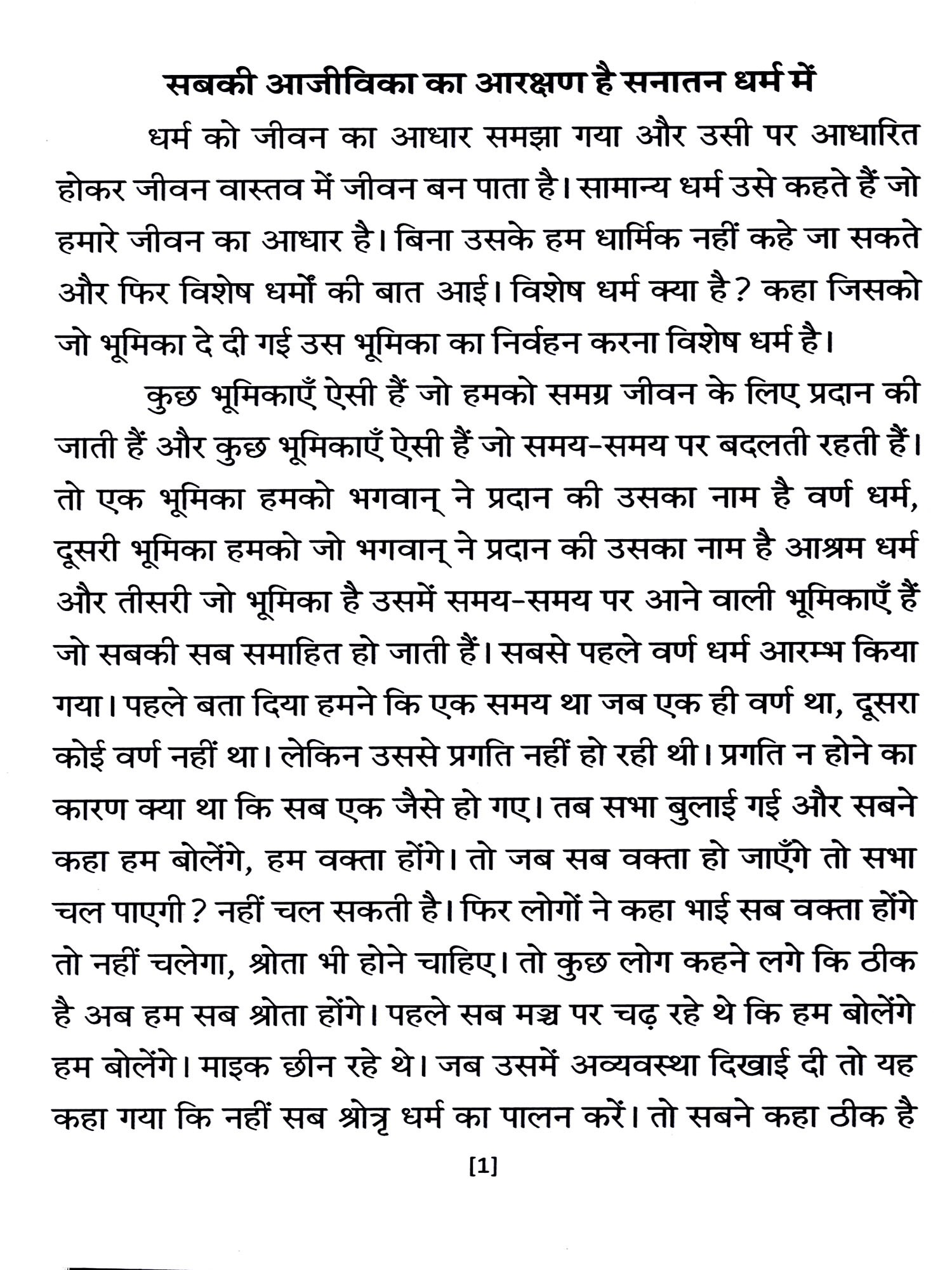 सबकी आजीविका का आरक्षण है सनातन धर्म में: Sabaki Aajeevika Ka Aarakshan Hai Sanatan Dharm Mein