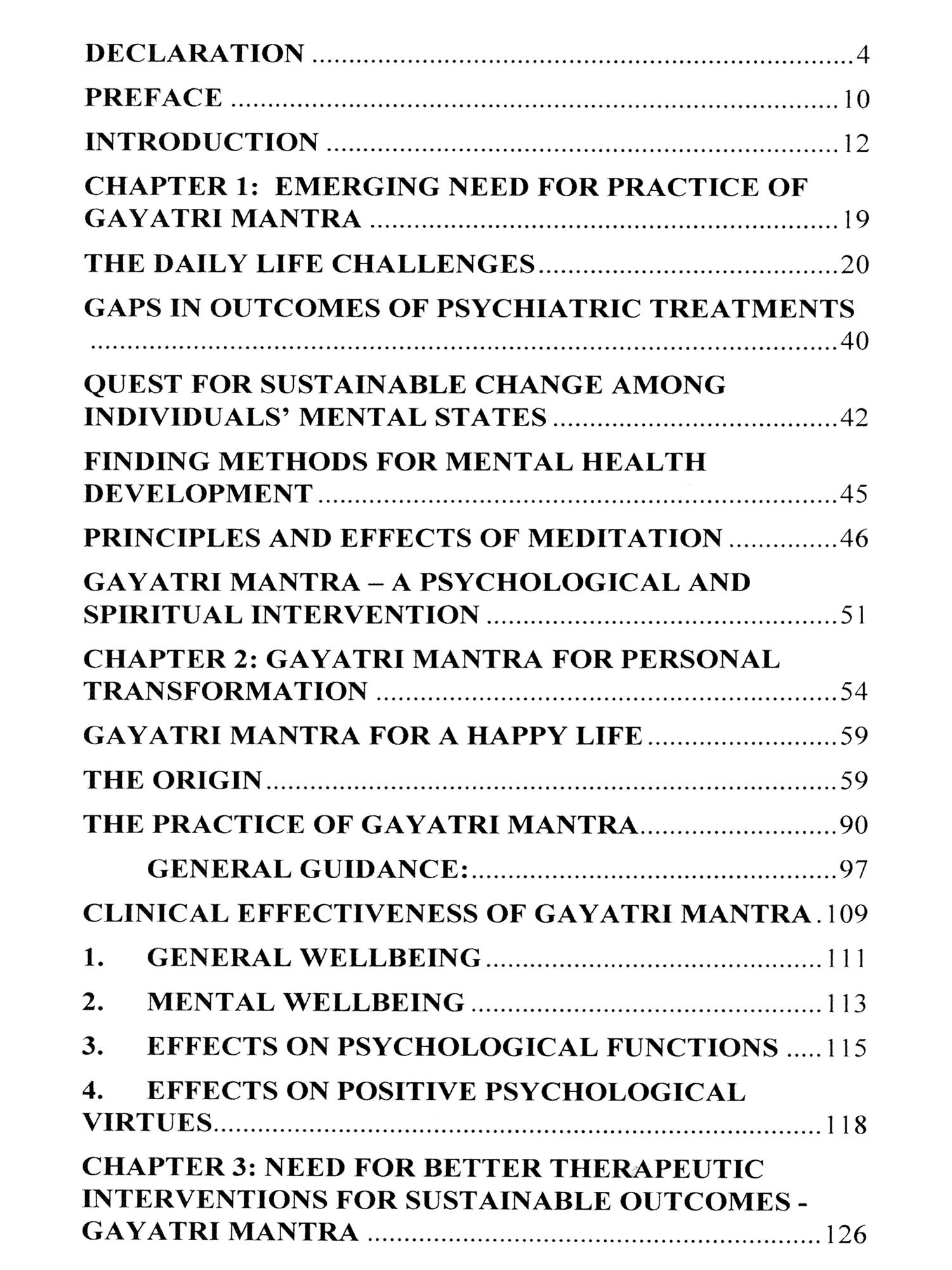 Chapter 4 introduces the foundational concepts of Indian mental health, creating a contextual backdrop to facilitate a nuanced understanding of the Gayatri Mantra's assimilation. As we navigate through these chapters, my aspiration is to demystify the ancient wisdom encapsulated in the Gayatri Mantra, making it accessible and relevant, particularly for young readers and students. The call to recite the Gayatri Mantra daily, with ritualistic devotion and adherence to prescribed norms, becomes an invitation to imbibe positivity and optimism into the very fabric of life. May this exploration serve as a beacon of inspiration for those seeking the transformative potential of the Gayatri Mantra in their journey towards mental well-being.