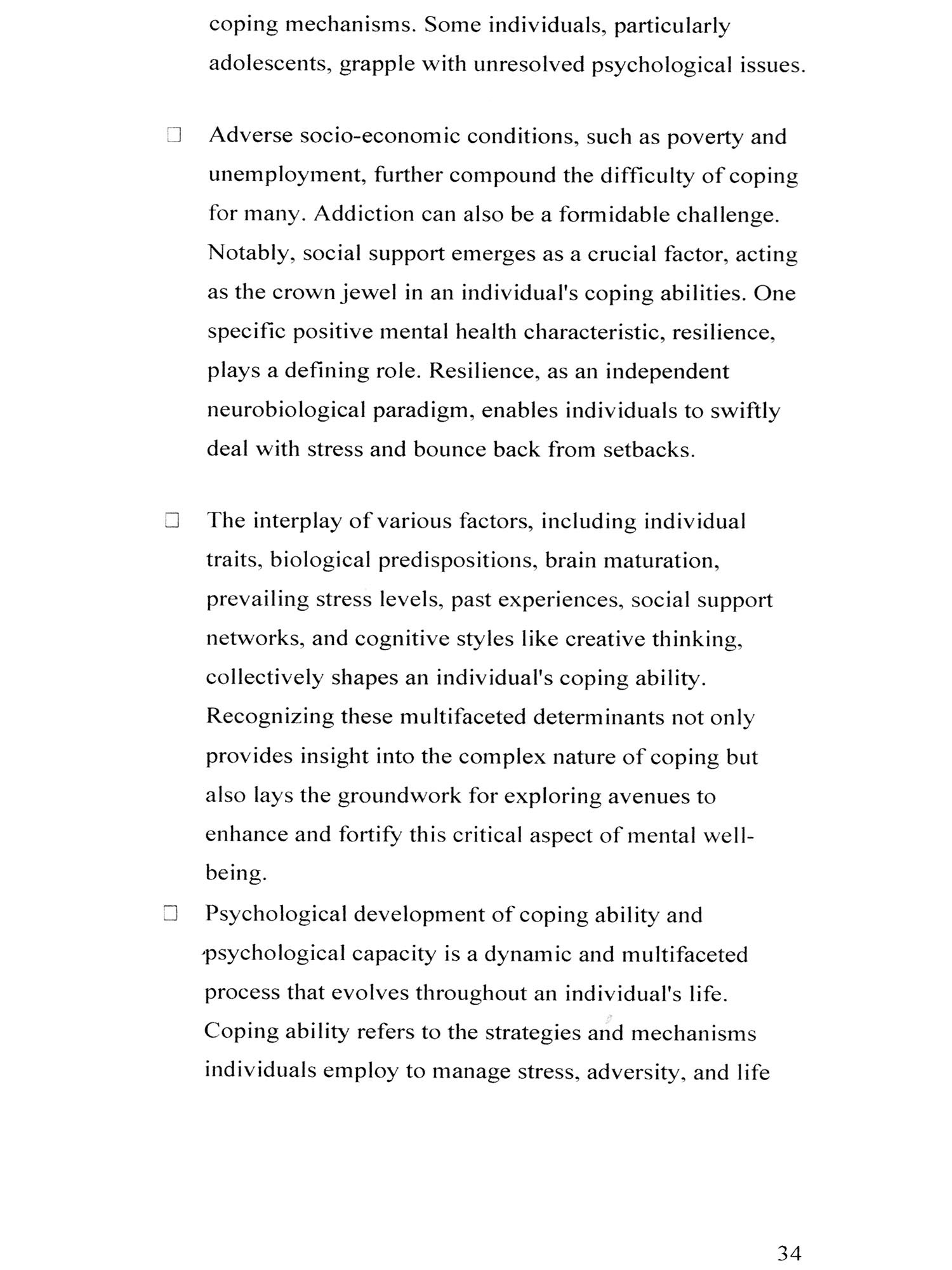 It's not just about the potential risk of encountering a psychiatric disorder; it's about the transformative journey into a person who can navigate life with integrity and honours. The essence of this integrity lies in a spectrum of capacities enduring challenges, thriving, displaying self-reliance, assisting others, empathizing, contributing to society, upholding honesty, and nurturing wisdom. Individuals with enduring personas, steadfast characters, and a reliable, socially conscious nature are the ones who truly experience self-respect and self-worth. This aspiration is universal, a fundamental need for everyone. It's not a mere embellishment but a lasting necessity. Every individual seeks robust mental strength, but some may remain vulnerable, possibly developing mental disorders, necessitating protection and prevention.