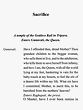 Rabindranath himself translated Visarjan under the title Sacrifice in 1917. It was first published by Macmillan, New York, with the dedication page reading: 'dedicated to those heroes who bravely stood for peace when human sacrifice was acclaimed for the war. It may be mentioned here that although the original Bengali play had five Acts, the English translation was given the shape of a one Act play. According to Edward Thompson, "Sacrifice is the greatest drama in Bengali literature." He elaborates, "All these dramas are vehicles of thought rather than expressions of action; and they show the poet's mind powerfully working on the subject of such things in popular Hinduism as its bloody ritual of sacrifice.