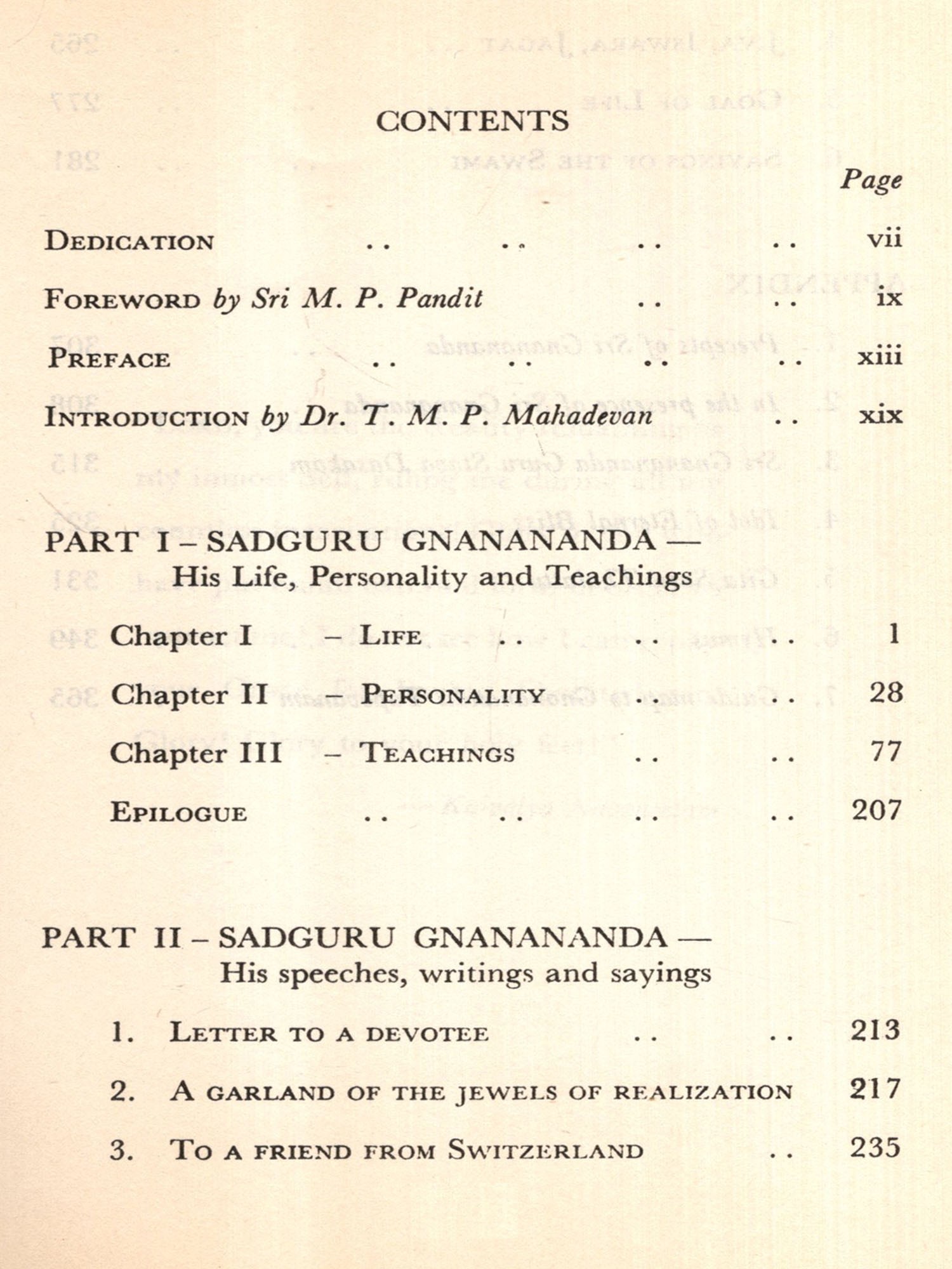 3. Sri M. P. Pandit of Sri Aurobindo Ashram, found time amidst his busy schedule, to write a foreward for this book. His foreword, which is at once brilliant and succinct, focusses scintillatingly on the Swami's glory in its multiple facets.