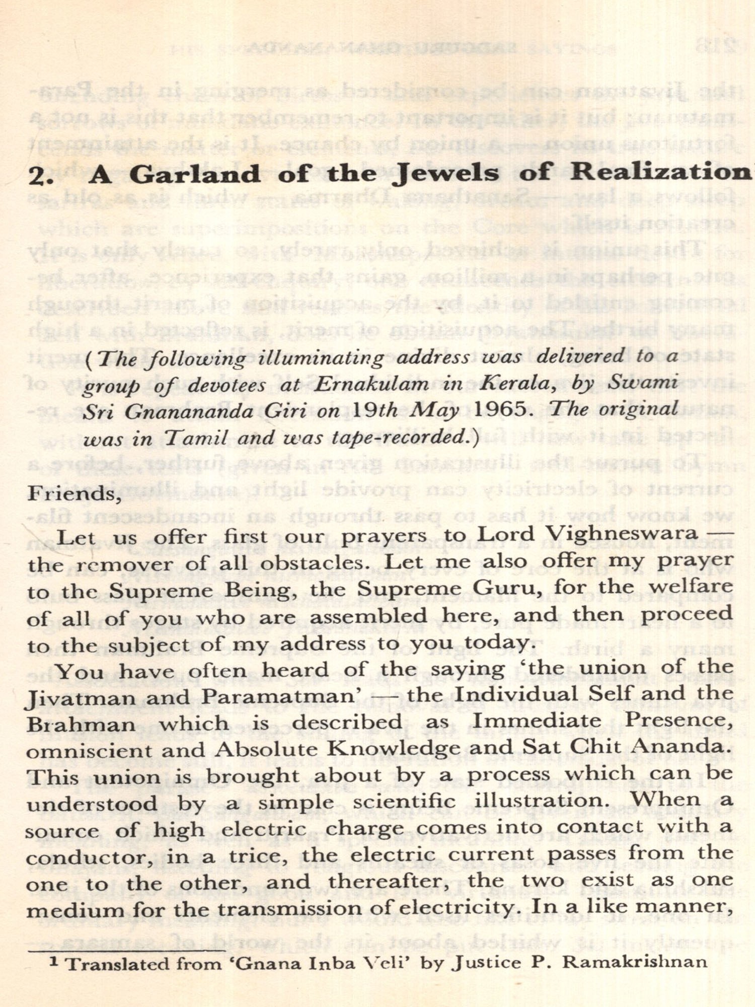 5. Justice P. Ramakrishnan's translations of the Swami's speech at Ernakulam, his conversation with a spiritual aspirant from Switzerland and a letter to a devotee are at once very authentic as also lucid and beautiful. These are in Part II of the book.