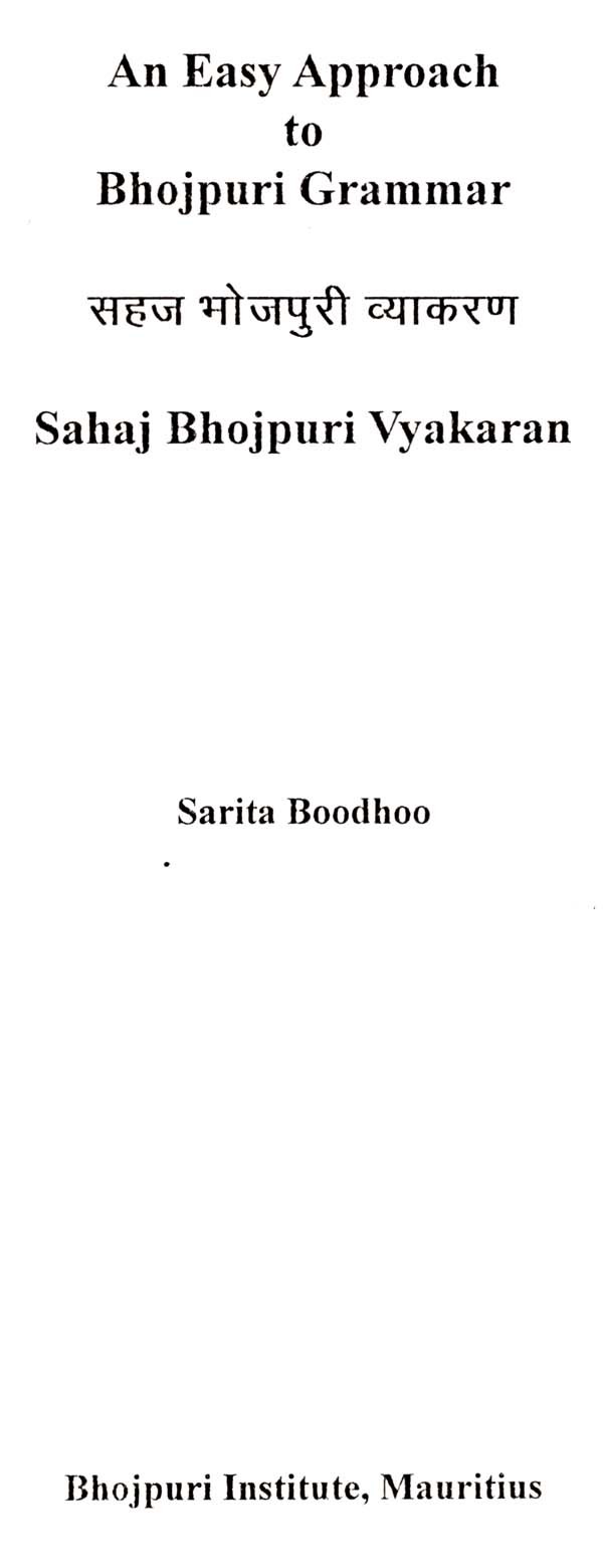 An Easy Approach to Bhojpuri Grammar सहज भोजपुरी व्याकरण Sahaj Bhojpuri Vyakaran has been written with utmost care and consideration, keeping the novice in mind all the time, so that the learner feels motivated and gains confidence at each new step.