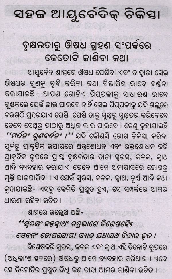 ଆୟୁର୍ବେଦ ଶିକ୍ଷା ବା ଚିକିତ୍ସା ଶିରୋମଣି- Ayurvedic Education or Treatment Shiromani (Oriya)