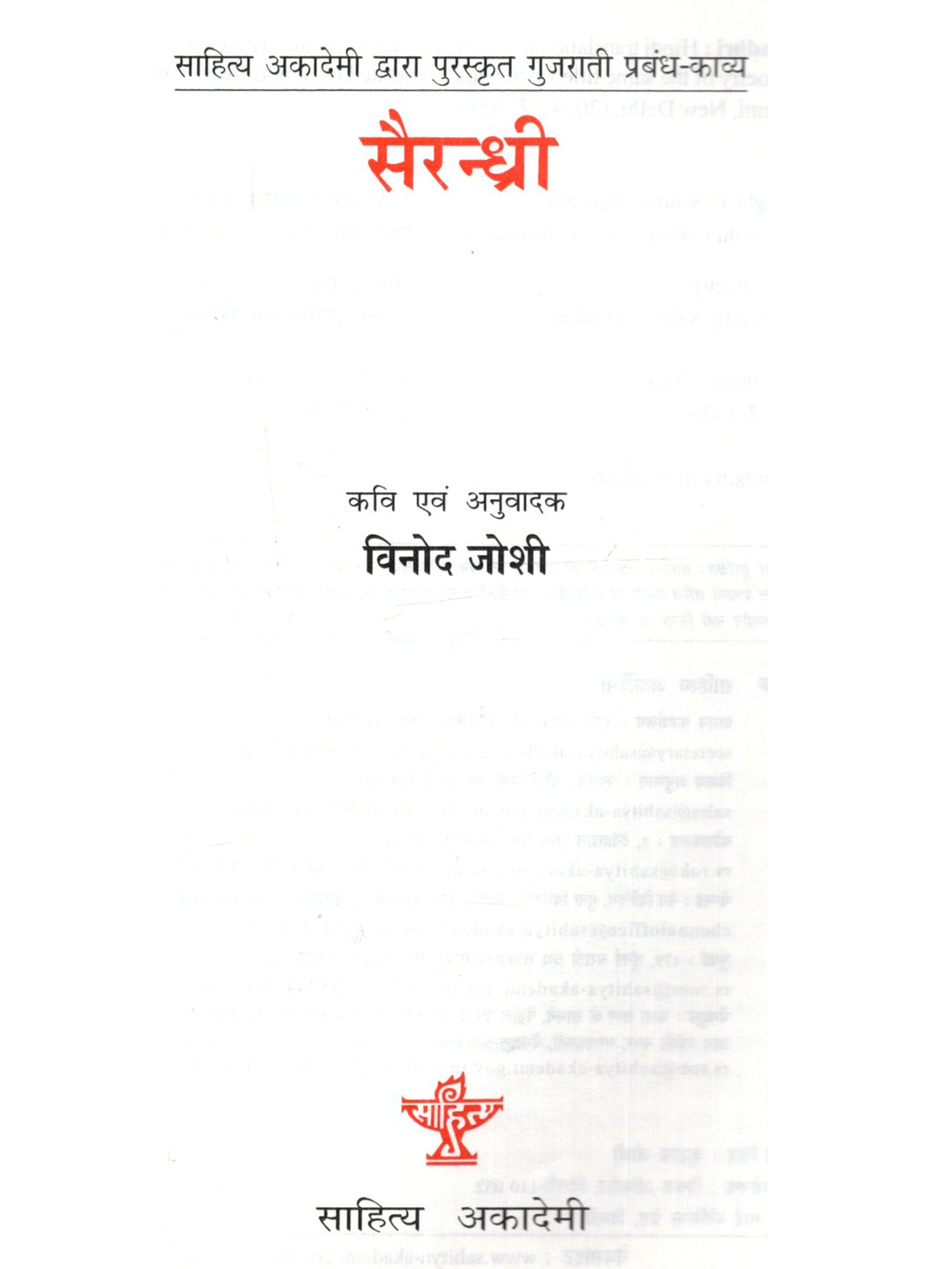 सेरची विनोद जोशी का साहित्य अकादेमी पुरस्कार (2023) प्राप्त प्रबंध-काव्य है, जिसे महाभारत को द्रौपदी को केंद्र में रखकर लिखा गया है। यह दीर्घ कविता 7 सर्ग, और 49 खंड में निवद्ध है। अज्ञातवास के दौरान सैरन्धी बनी द्रौपदी के मौलिक मनीसंचलन और भावनाओं की जब तक एक अस्पृष्ट रही दुनिया चोपाई और दोहरा जैसे छंदों के माध्यम से इस प्रबंध-काव्य में बहुत खूबसूरती से प्रस्तुत की गई है। भारतीय भाषाओं के काव्य साहित्य में एक अनूठी प्रशिष्ट रचना के रूप में सैरन्धी विख्यात है। प्रबंध-काव्य सैरन्ध्री के लिए उनको भारतीय विद्या भवन, मुंबई द्वारा समर्पण सम्मान (2018), गुजरात साहित्य अकादमी अवॉर्ड (2018) गुजराती साहित्य परिषद् पुरस्कार (2018) और नर्मद सुवर्णचंद्रक (2022) भी प्रदान किए गए हैं।