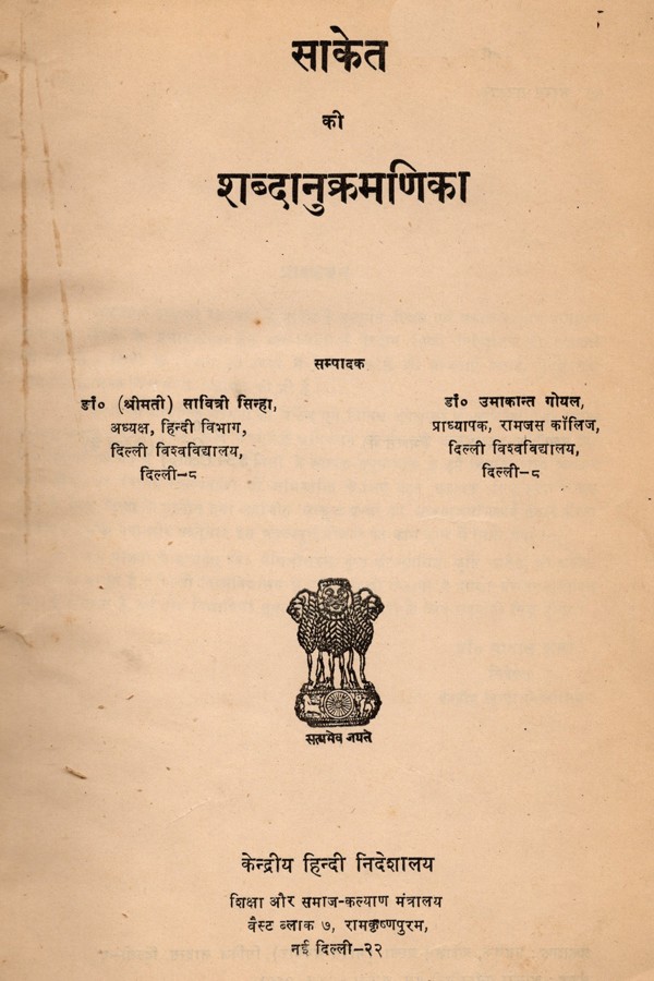 राजभाषा सम्बन्धी राष्ट्रपति के आदेश के अन्तर्गत, शिक्षा एवं समाज कल्याण मन्त्रालय के अधीन हिन्दी के प्रचार-प्रसार हेतु सन् 1960 में केन्द्रीय हिन्दी निदेशालय की स्थापना की गई थी। हिन्दी के विकास की दिशा में निदेशालय ने जो योजनाएं बनाई, उनमें एक योजना शब्दानुक्रमणिकाओं के प्रकाशन की भी है। हिन्दी को आधुनिक सभ्यता की जटिल एवं विविध अपेक्षाओं को अभिव्यक्ति का सशक्त माध्यम बनाने के लिए, इसके शब्द भण्डार के अधिकतम उपयोग को आवश्यकता बढ़ती जा रही है। विद्वानों का मत है कि हिन्दी शब्दावली में व्यापक अनुसन्धान से हमें विशाल शब्द भण्डार प्राप्त होगा, जो विविध संकल्पनाओं की अभिव्यक्ति के लिए बहुत सहायक सिद्ध होगा। इस कार्य के लिए हिन्दी के प्राचीन तथा अर्वाचीन उत्कृष्ट ग्रन्थों की शब्दानुक्रमणिकाएँ तैयार करना आवश्यक समझा गया और तदनुसार इस महत्त्वपूर्ण योजना का काम हाथ में लिया गया । इस योजना के अन्तर्गत स्व० मैथिलीशरण गुप्त की सुप्रसिद्ध कृति 'साकेत' की शब्दा-नुक्रमणिका प्रस्तुत है। दिल्ली विश्वविद्यालय के प्रसिद्ध हिन्दी विद्वानों ने इसका संकलन-सम्पादन किया है। आशा है, यह ग्रन्थ विद्यायियों तथा अनुसन्धानकर्ताओं के लिए उपयोगी सिद्ध होगा ।