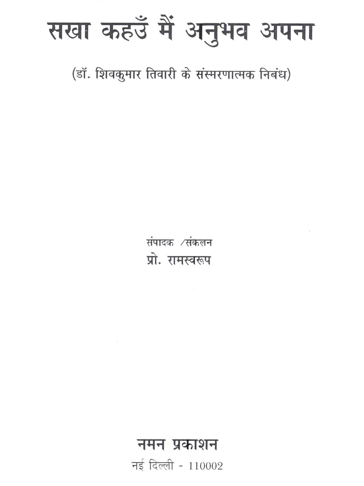 और 'अनुभव की संकरी गली में' के पश्चात् 'सखा कहउँ में अनुभव अपना' डॉ. शिवकुमार तिवारी