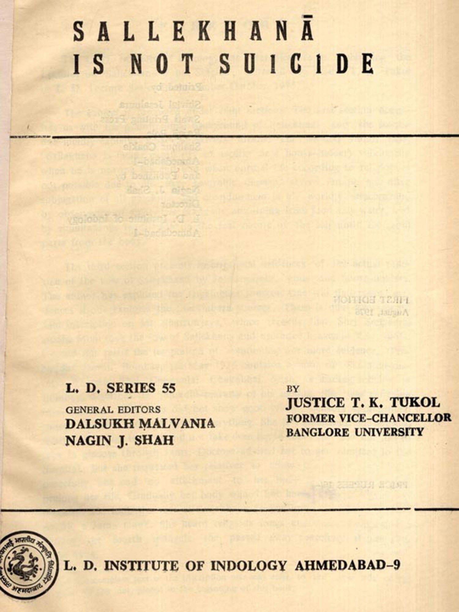 Sallekhana is Not Suicide (An Old and Rare Book)