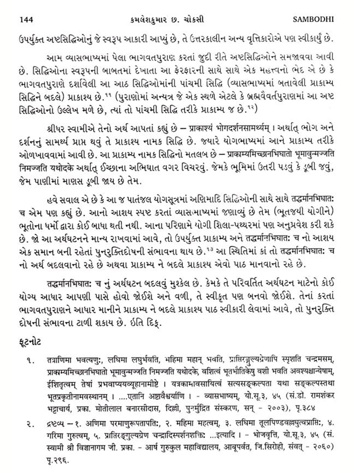 Sambodhi with Vedic Sources of the Vedic Mathematics' and Shrimad Rayacandra's Viewpoint of Dharma in the Kavyamala, Vol. XXIII, 2000