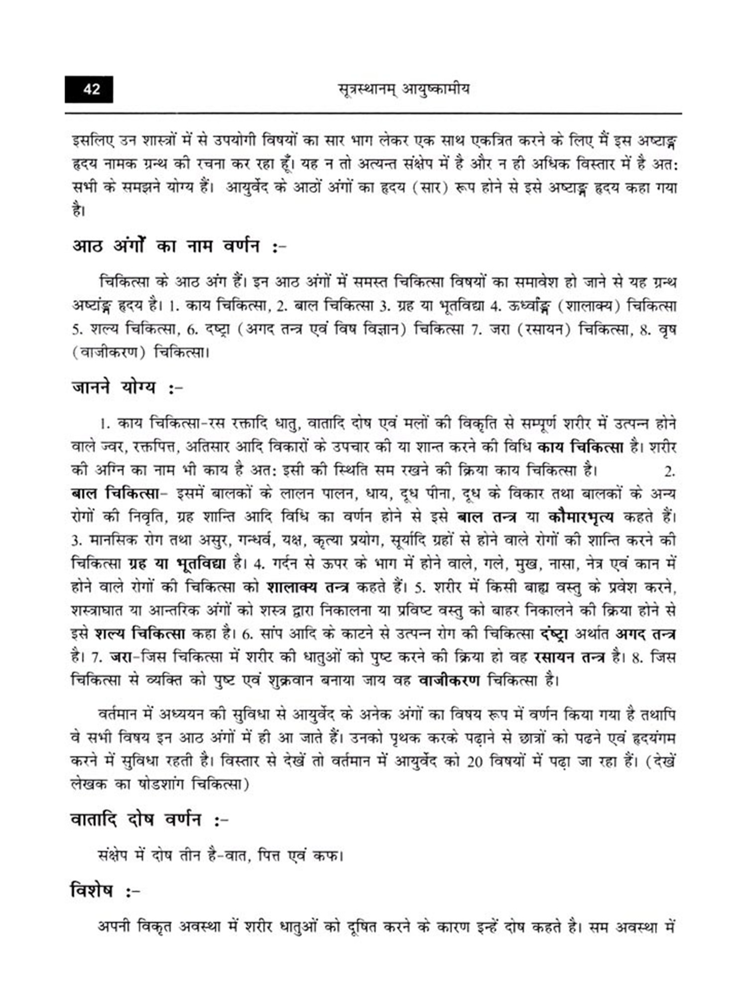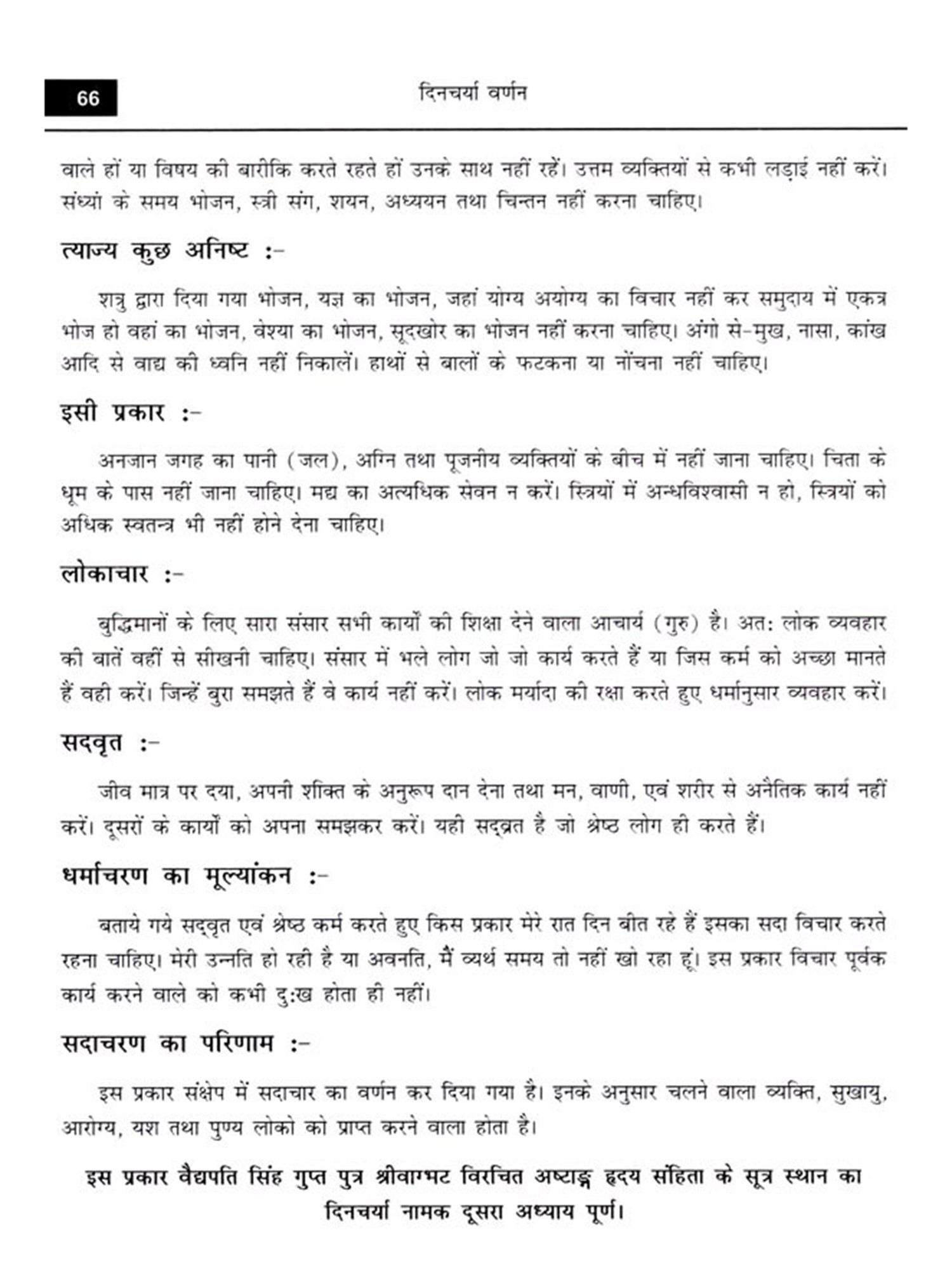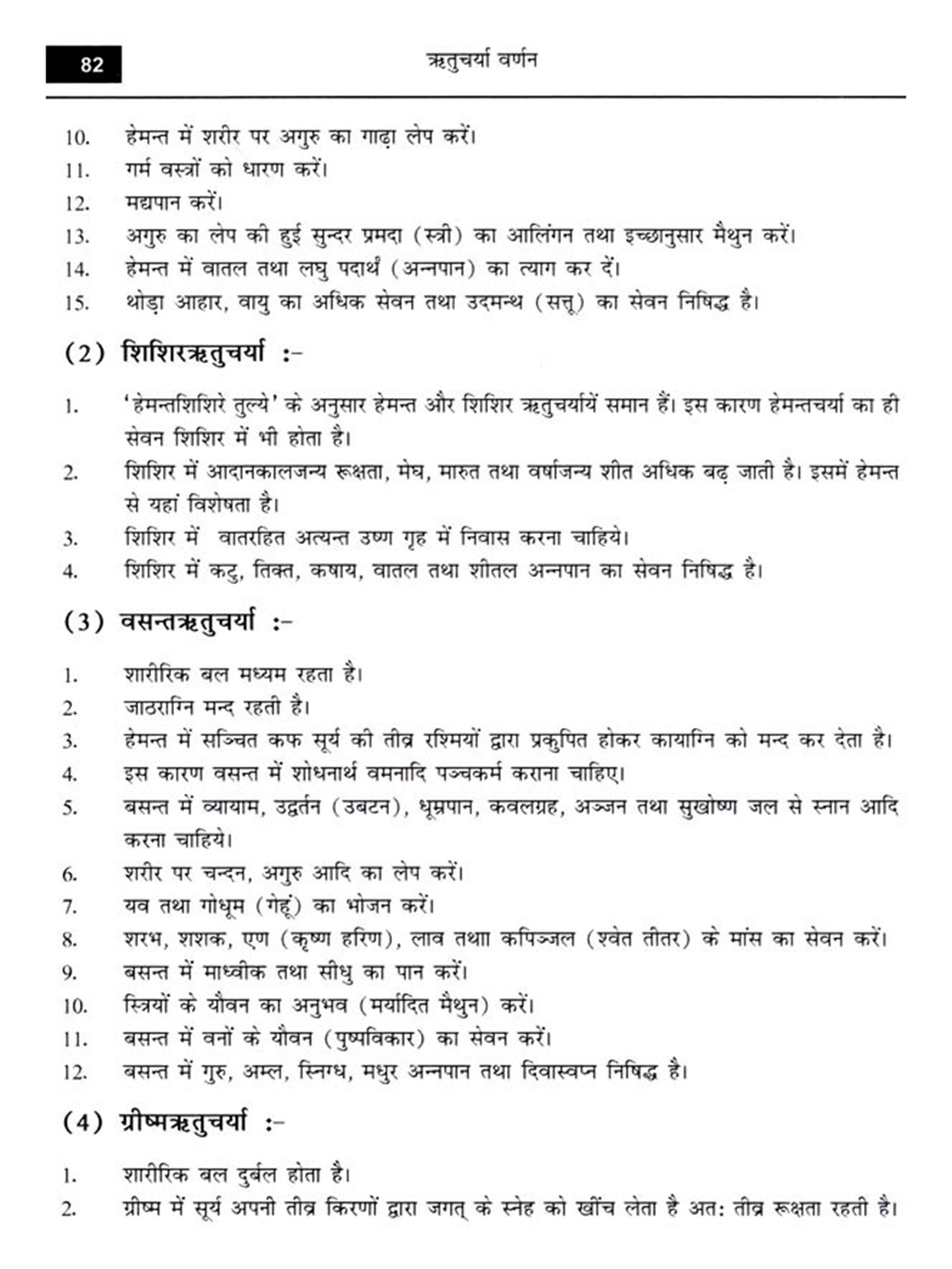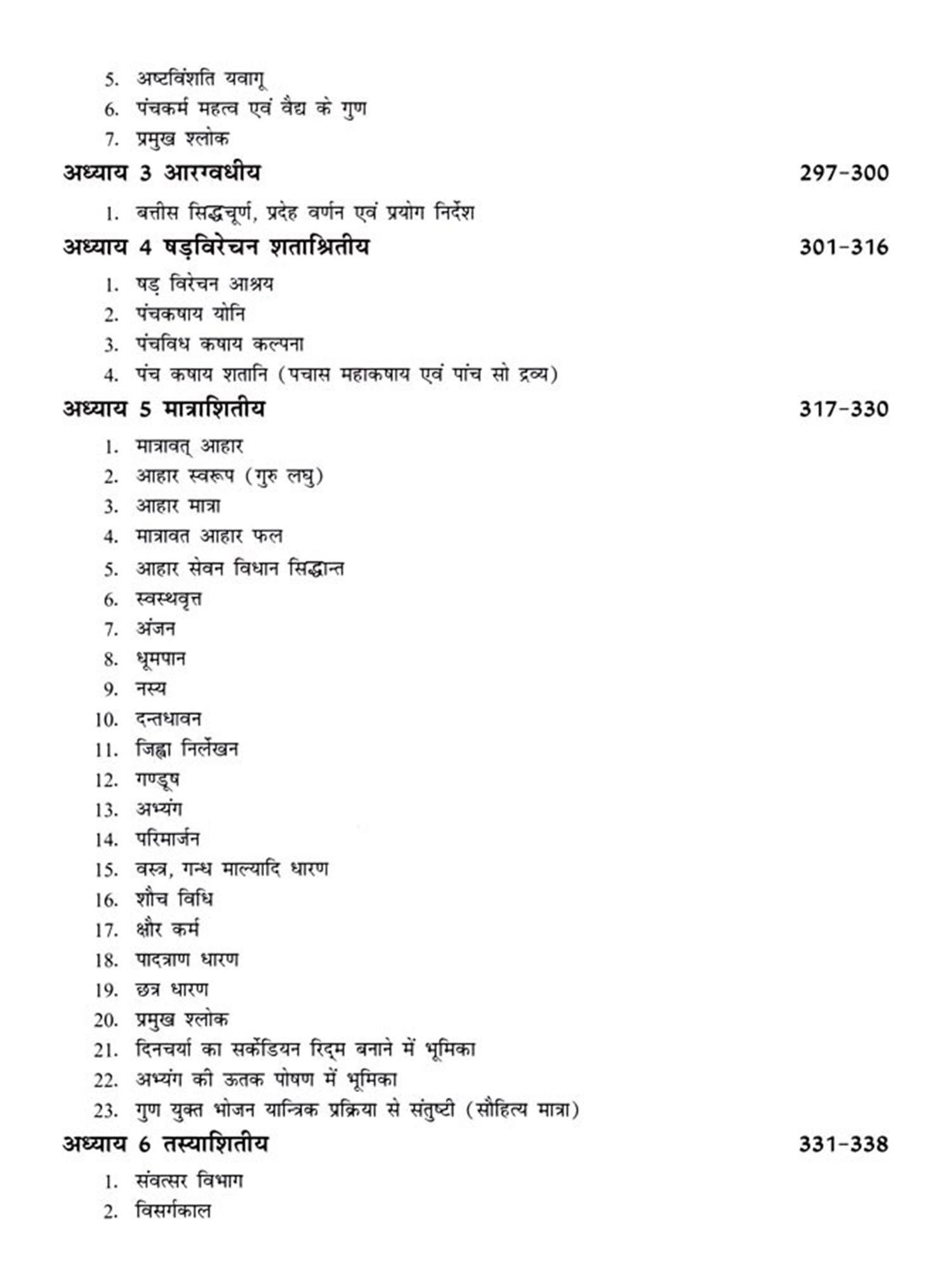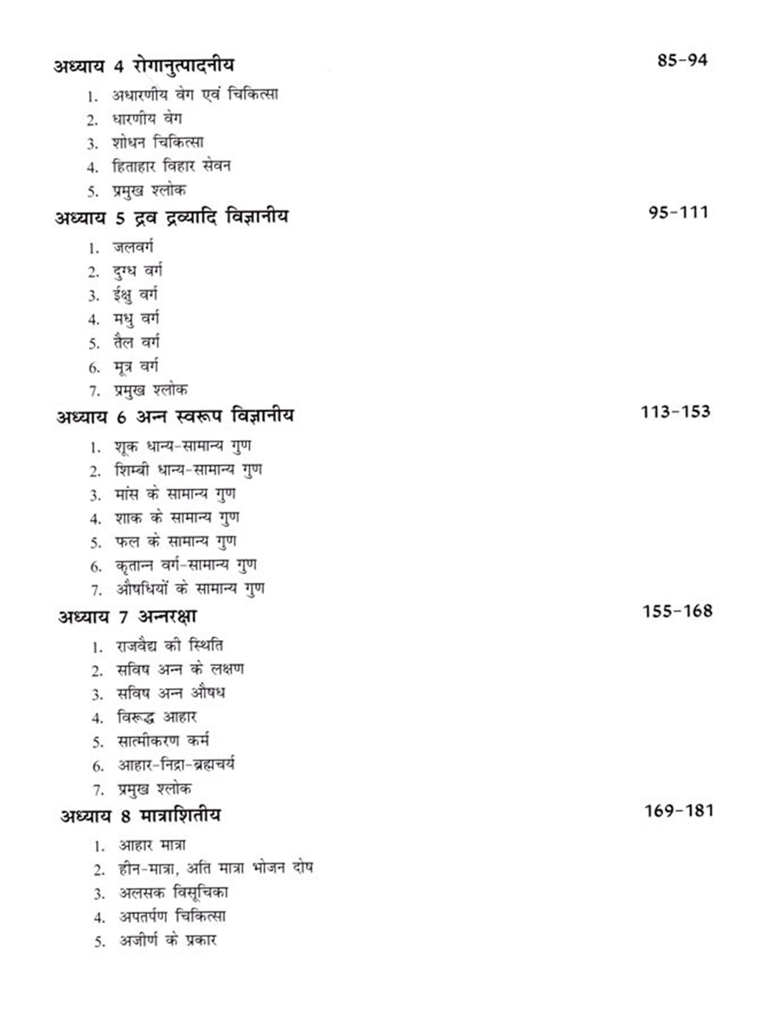 पुस्तक में यथावश्यक सभी बिन्दुओं पर उपयोगिता की दृष्टि से प्रकाश डाला है। साथ ही प्रत्येक अध्याय में आये विशेष विषय यथा उपवास से ओटोफैगी प्रक्रिया, मेन्टल हेल्थ एवं माइक्रोबायोटा, प्रकृति की आधुनिक परिपेक्ष्य में समीक्षा, कर्क एवं मकर संक्रान्ति की दोनो अयनों के निर्माण में आधुनिक विचारधारा, दिनचर्या का सर्केडियन रिम बनाने में भूमिका, स्नेहाभ्यंग से ऊतक पोषण की प्रक्रिया आदि अनेक प्रसंगों को स्पष्ट किया है।