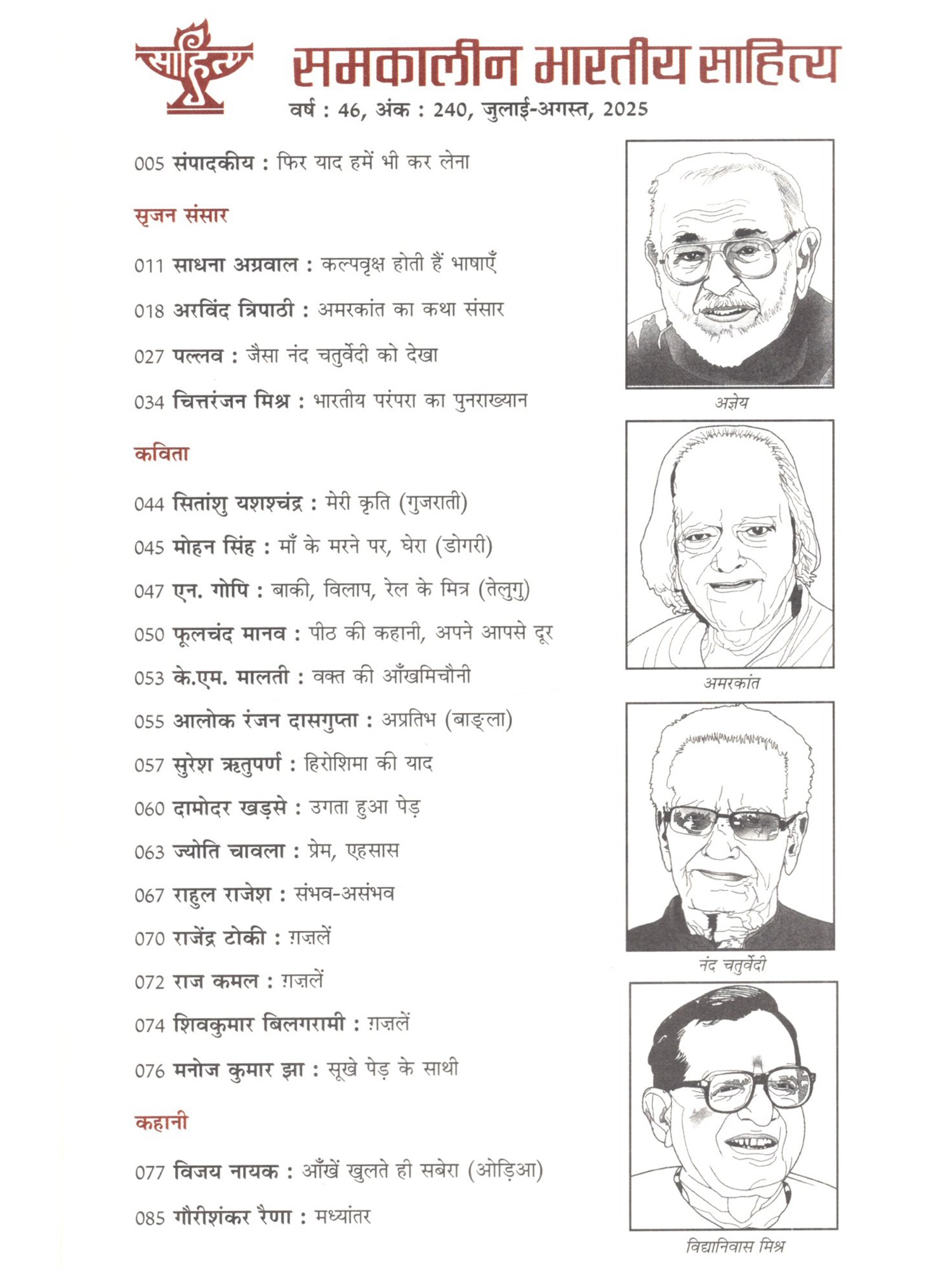 समकालीन भारतीय साहित्य (साहित्य अकादेमी की द्वैमासिक पत्रिका): Samkalin Bharatiya Sahitya (Sahitya Akademi ki Dvaimasik Patrika Year: 46, Issue: 240, July-August, 2025)
