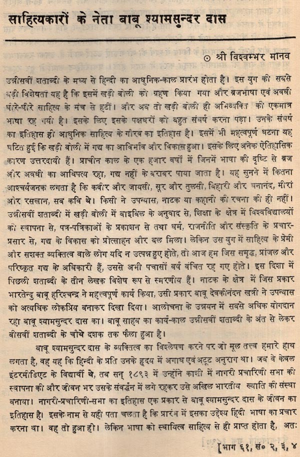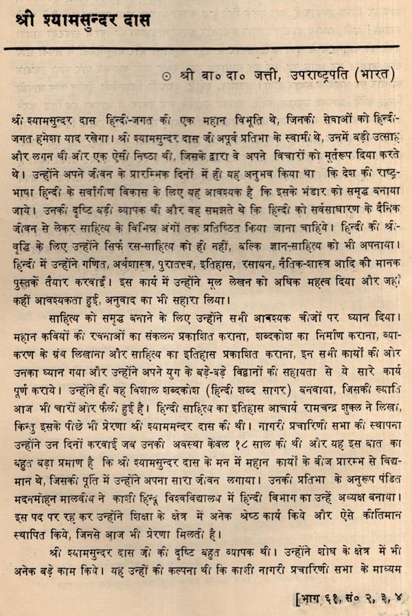 सम्मेलन पत्रिका- श्यामसुन्दर दास जन्मशती विशेषांक: Sammelan Patrika- Shyamsundar Das Birth Centenary Special