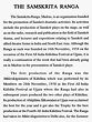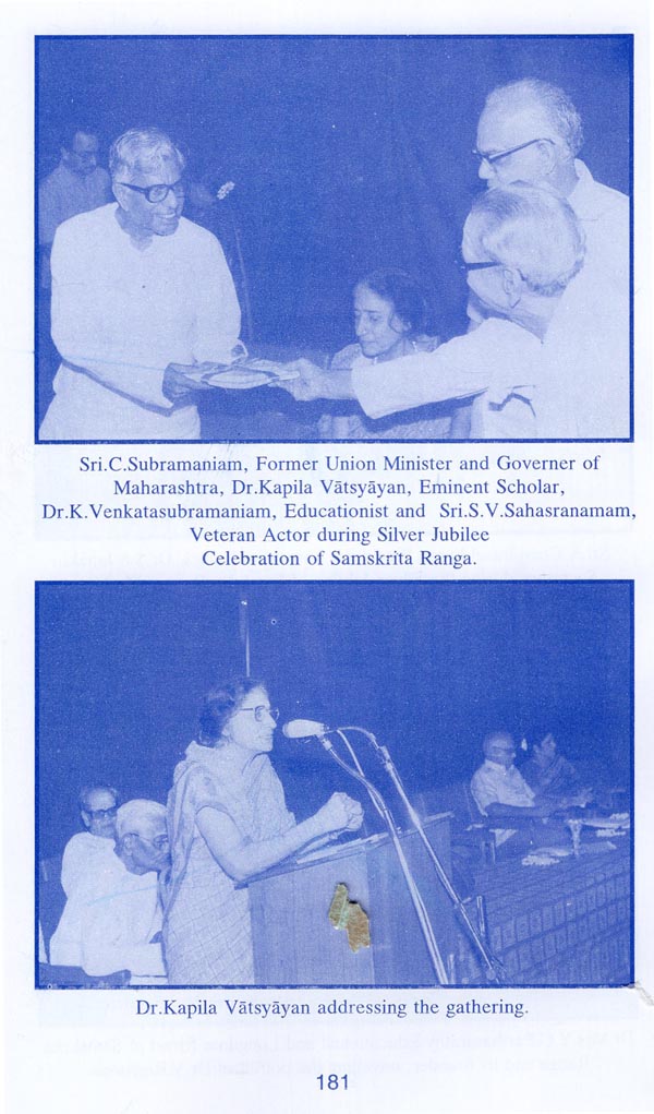 Samskrita Ranga which was started with a visionary zeal by Dr. V. Raghavan, has contributed in its own unique way to propagate Sanskrit Drama, through Stage Productions and Research work in the varied aspects of authentic Sanskrit Drama, its production and Aesthetics. During the past 50 years of unbroken activity, the Ranga has rightly claimed a unique status for its vibrant role in this sphere.