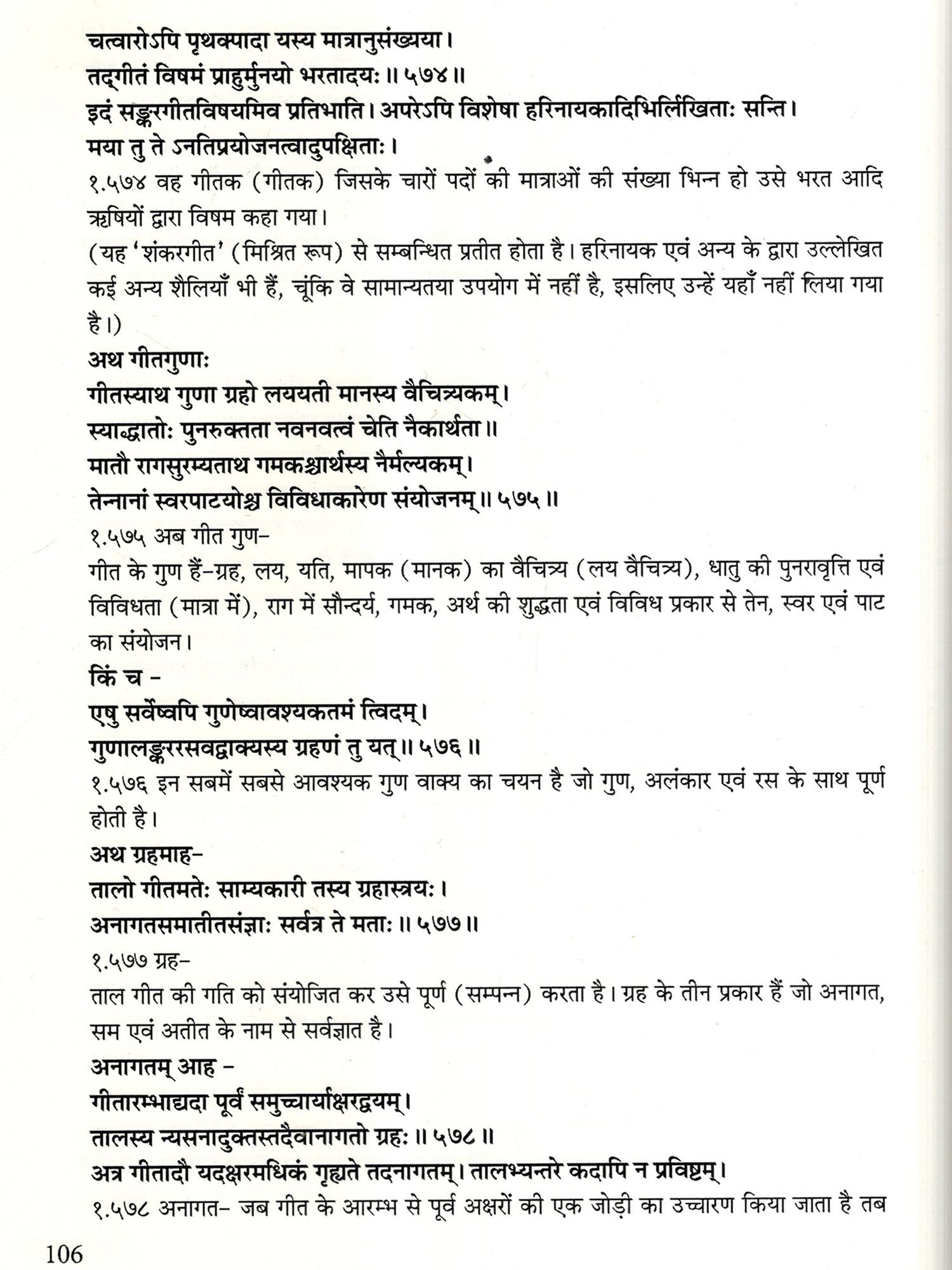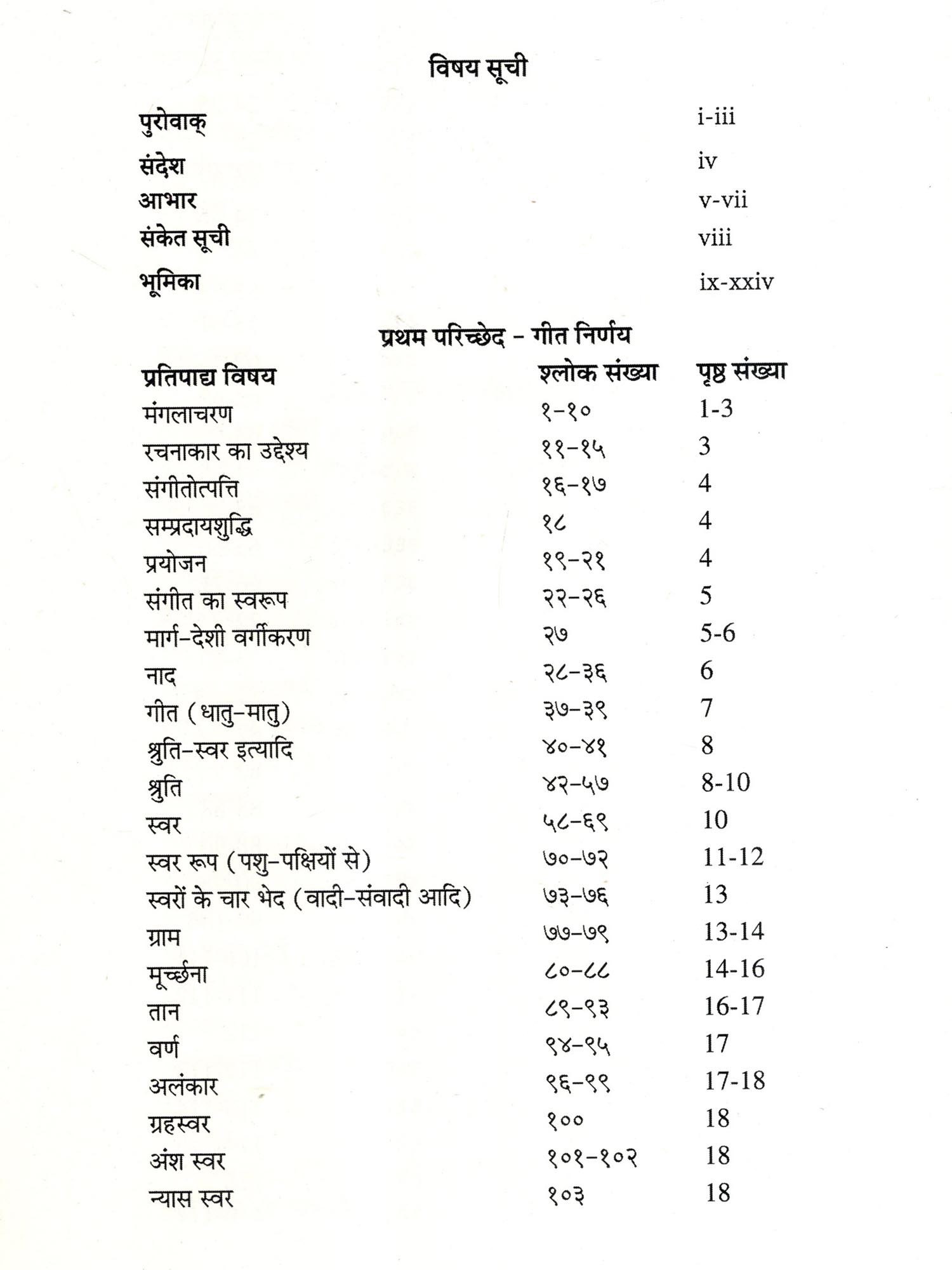 संगीत एवं नृत्य की व्यापक चर्चा करने वाले पूर्वी भारत के इस अत्यन्त महत्त्वपूर्ण ग्रन्थ में संगीतशास्त्र परम्परा की प्रवाहमान धारा दृष्टिगोचर होती है। संगीतशास्त्र परम्परा समृद्ध, इस ग्रन्थ में भरत से लेकर अन्य पूर्वर्ती ग्रन्थकारों के सिद्धान्तों को सन्दर्भित करते हुए नवीन विचारों एवं सिद्धान्तों का प्रस्तुतिकरण भी किया गया है।