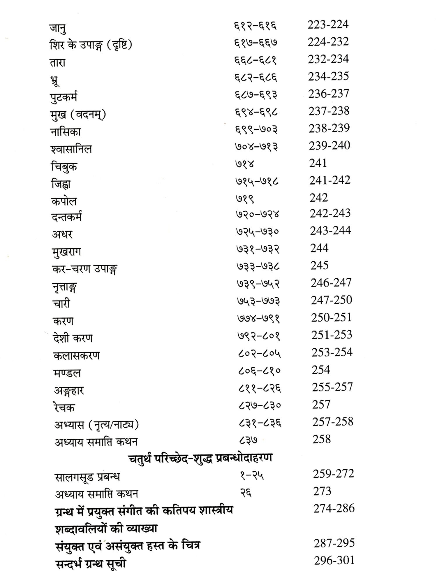 यह ग्रन्थ भारतीय संगीत एवं नाट्य के आधार ग्रन्थ भरतमुनिकृत नाट्यशास्त्र का सन्दर्भ लेते हुए नारदसंहिता, पंचमसारसंहिता, मम्मटकृत संगीतरत्नमाला, गोपगोविन्द (सांगीतिक रचनाओं की व्याख्या), गीतगोतविन्द (प्रबन्ध रचना), कोहलीय, मतङ्गकृत बृहद्देशी, शार्ङ्गदेवकृत सङ्गीतरत्नाकर, संङ्गीतशिरोमणि, हरिनायकसूरीकृत संगीतसार, दामोदरसेनकृत संगीत दामोदर व शुभंकरकृत संगीत दामोदर, संगीत वाचस्पति, कलांकुरनिबन्ध एवं संगीत कल्पतरू आदि को सन्दर्भ के रूप में लेते हुए ग्रन्थ में निहित पाठ्य सामग्रियाँ प्रस्तुत कर ग्रन्थ को समृद्ध करता है।