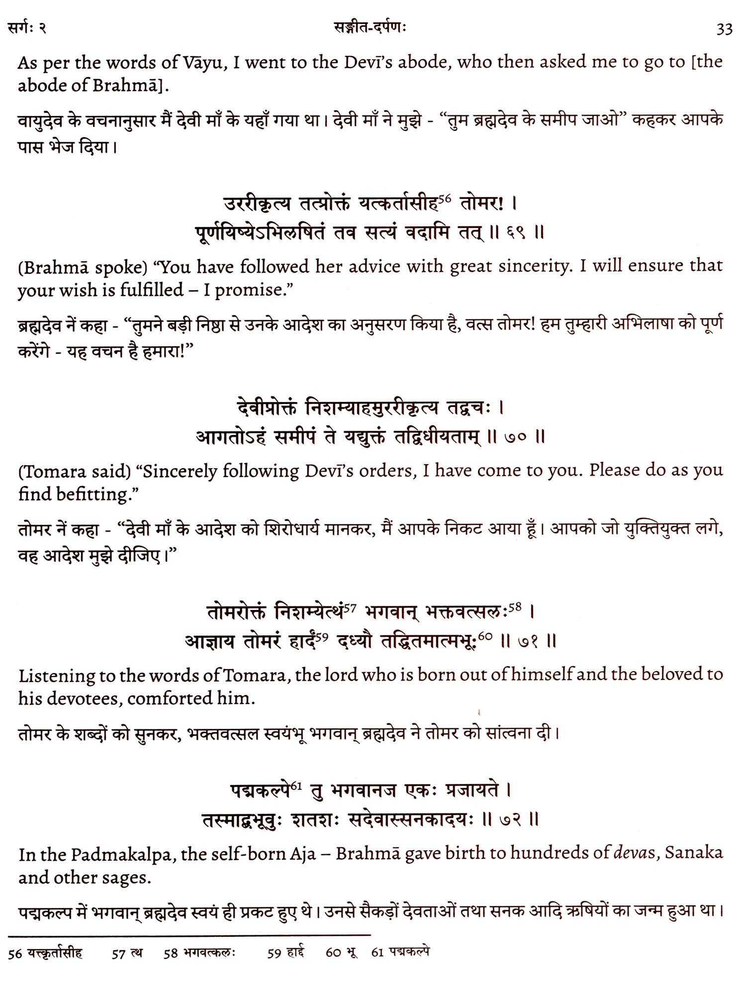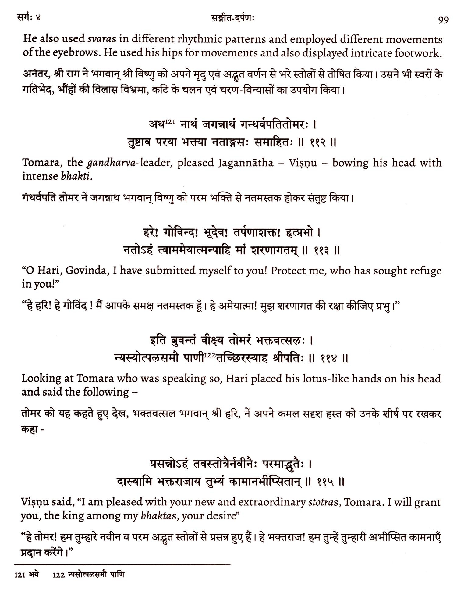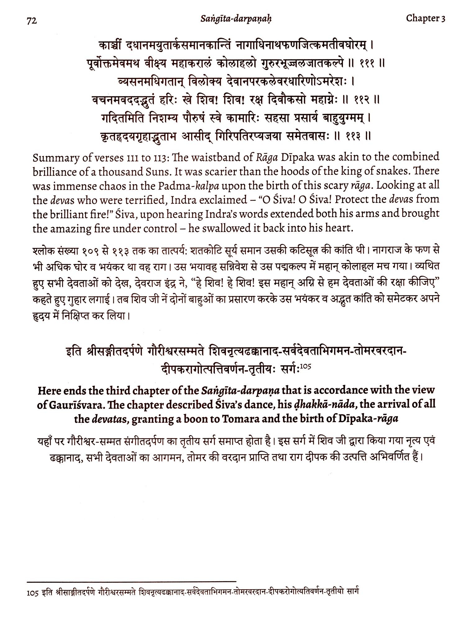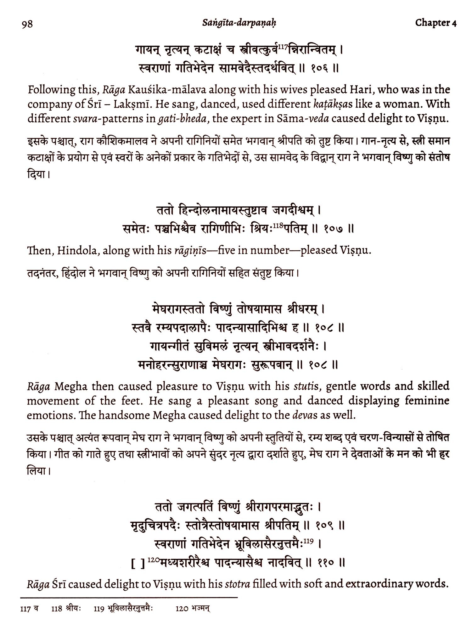 Five to six generations before me, my ancestors scribed this; it is bound together in various metrical patterns and is written continuously, without space between words and verses. In this treatise along with tala, raga, nayika classification, gati classification and desți classifications; the usage of old dance bols has been done, making it a complete confluence of all the elements of music, some of which are sometimes difficult and rare to find in other treatises. The contents of the treatise have been culled together in a logical, sequential and deliberate format. It is my undying faith that this treatise will be an asset to the entire world of art, music, literature and dance lovers, who can increase their knowledge exponentially by immersing themselves into the study of this treatise.