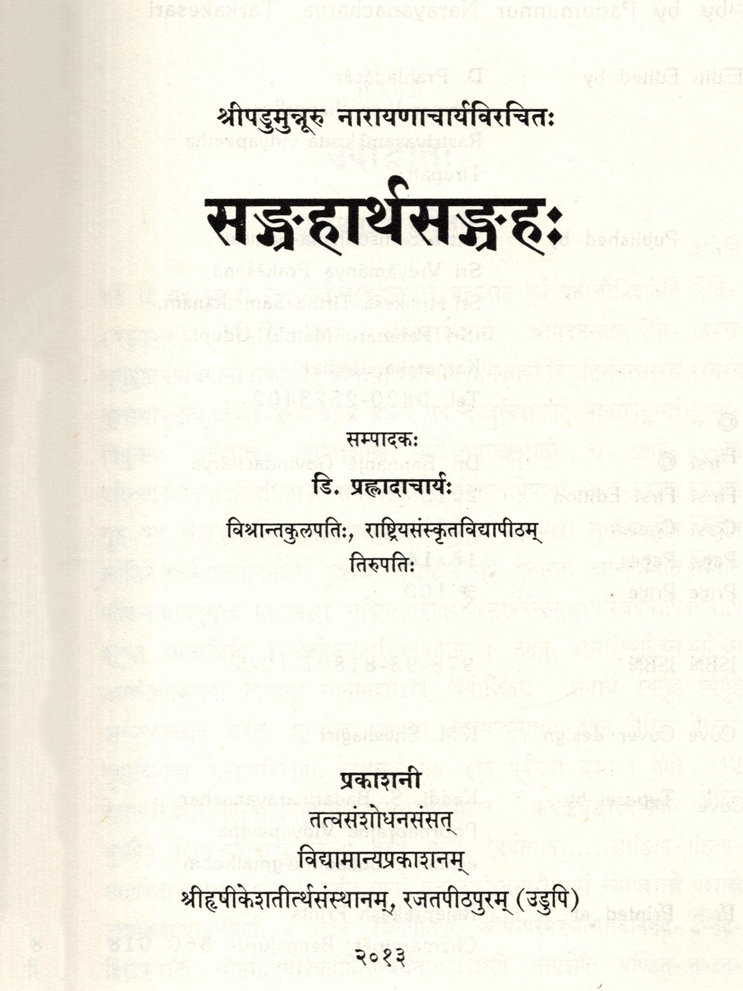 सङ्ग्रहार्थसङ्ग्रहः- Sangrahartha Sangraha Compiled by Sri Padumunnuru Narayanacharya