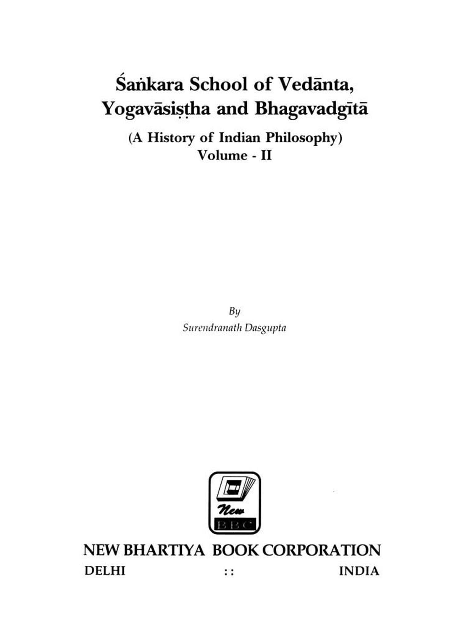 Sankara School of Vedanta, Yogavasistha and Bhagavadgita: A History of Indian Philosophy (Volume- 2)
