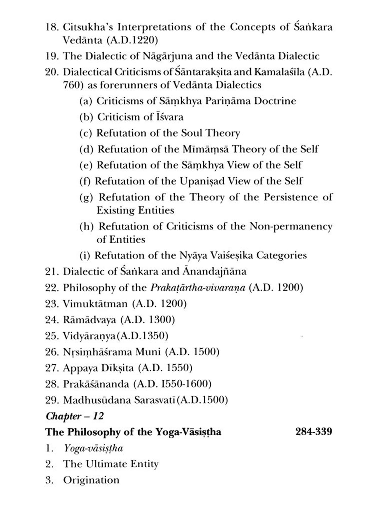 Vedanta, the Medical Speculations of the Ancient Hindus, and the Philosophy of the Yoga-vasistha and the Bhagavad-gita. A good deal of the Sankara Vedanta, especially in regard to its controversy with Bhaskara, Ramanuja Madhva and their followers, still remains to be treated in the third volume.
