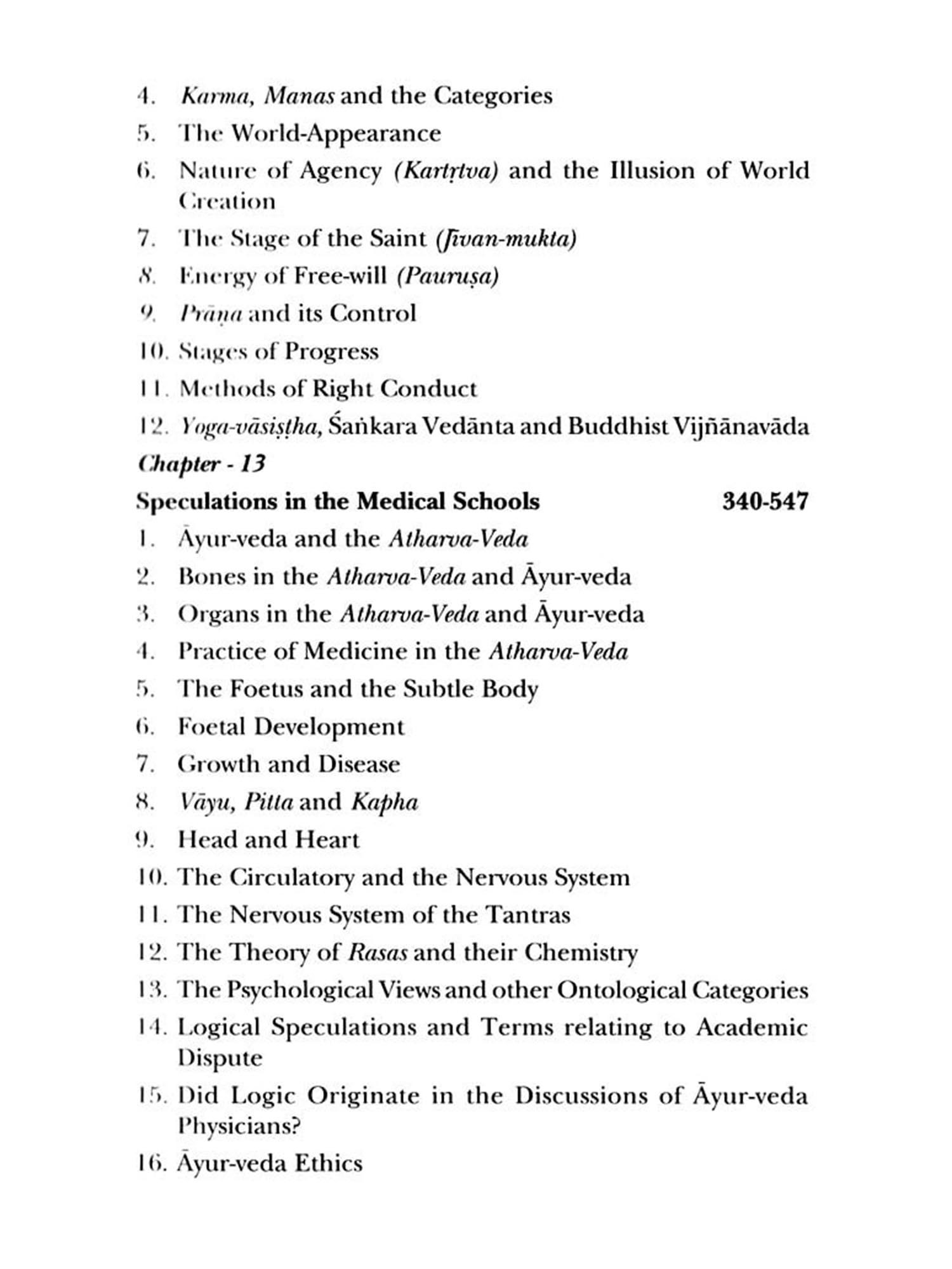 A word of explanation may be needed with regard to the inclusion in a work on Indian philosophy of the speculations of the Indian medical schools. Biology has recently played a great part in liberating philosophy from its old-world ideas. In ancient India, Biology had not grown into a separate science; whatever biological ideas were current in India were mixed up with medical, osteological and physiological speculations, the only branches of study in ancient India which may be regarded as constituting an experimental science. It was therefore thought that a comprehensive work on the history of Indian philosophy would be sadly defective without a chapter on these speculations, which introduce also some distinctly new ethical and eschatological concepts and a view of life which is wholly original. The biological notions of growth, development and heredity of these schools are no less interesting, and their relations to the logical categories of Nyaya are very instructive.