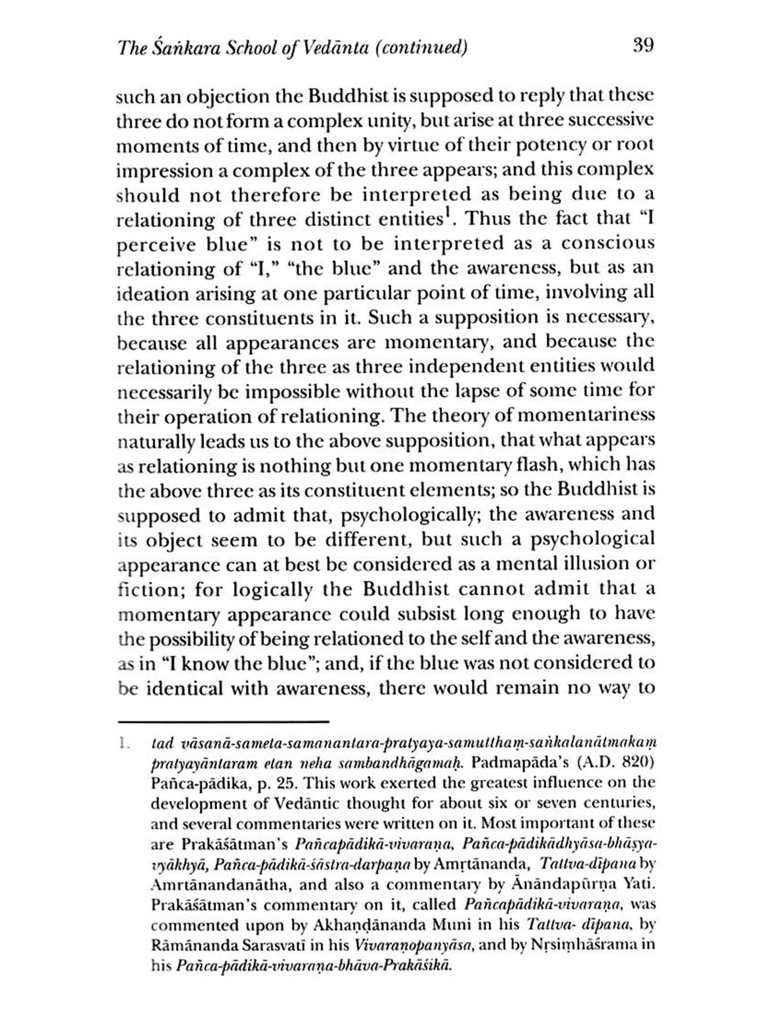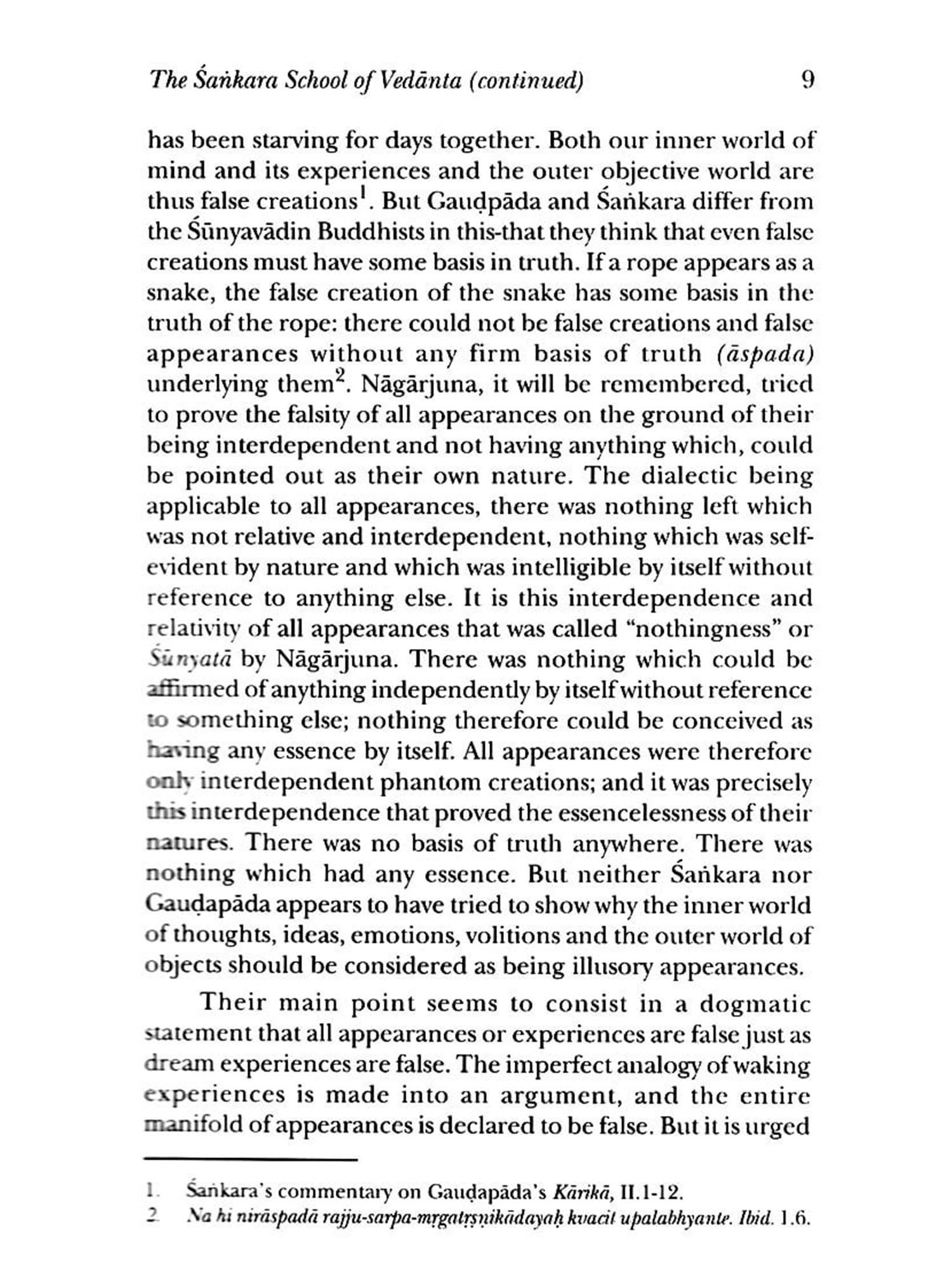 Since the publication of the first volume of the present work, many treatises on Indian philosophy have appeared in India and elsewhere. But it has not been possible to refer to many of these. The present attempt is mainly intended to give an exposition of Indian thought strictly on the basis of the original texts and commentaries, and not to eradicate false views by indulging in controversy; and, since the author takes upon himself the responsibility of all the interpretations of the texts that he has used, and since he has drawn his materials mostly from them, it has seldom been possible to refer to the efforts of his fellow-workers in the field. Occasionally, however, he has had to discuss and sometimes to borrow the views of other writers in the assessment of chronological facts, and he also expresses his indebtedness to such other writers who have worked upon some of the special problems of Indian thought. It has been suggested to him that it would have been better if the views of other writers had been fully criticized, but however that may be, such criticism has been considered as beyond the scope of this work, which, as at present planned, will cover some 3000 pages when completed.