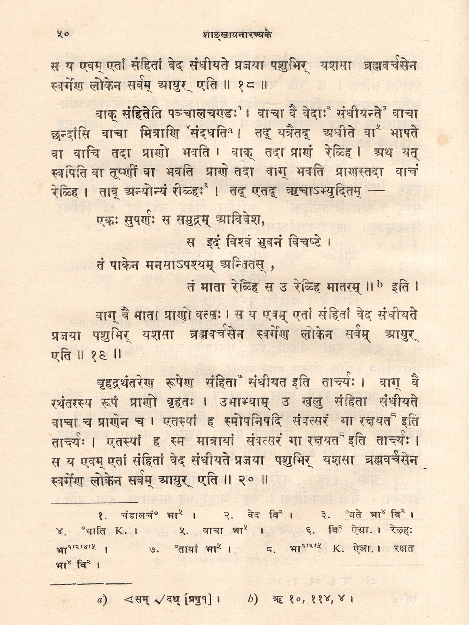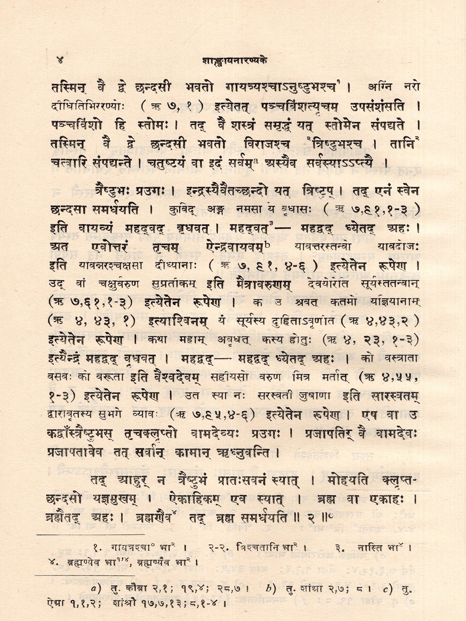 Apart from presenting an authentic text of the Sankhayana-Aranyaka, based, as stated earlier, on the basis of earlier editions and fresh manuscripts, it may be noted that the edition incorporates certain special features from the utilitarian point of view: