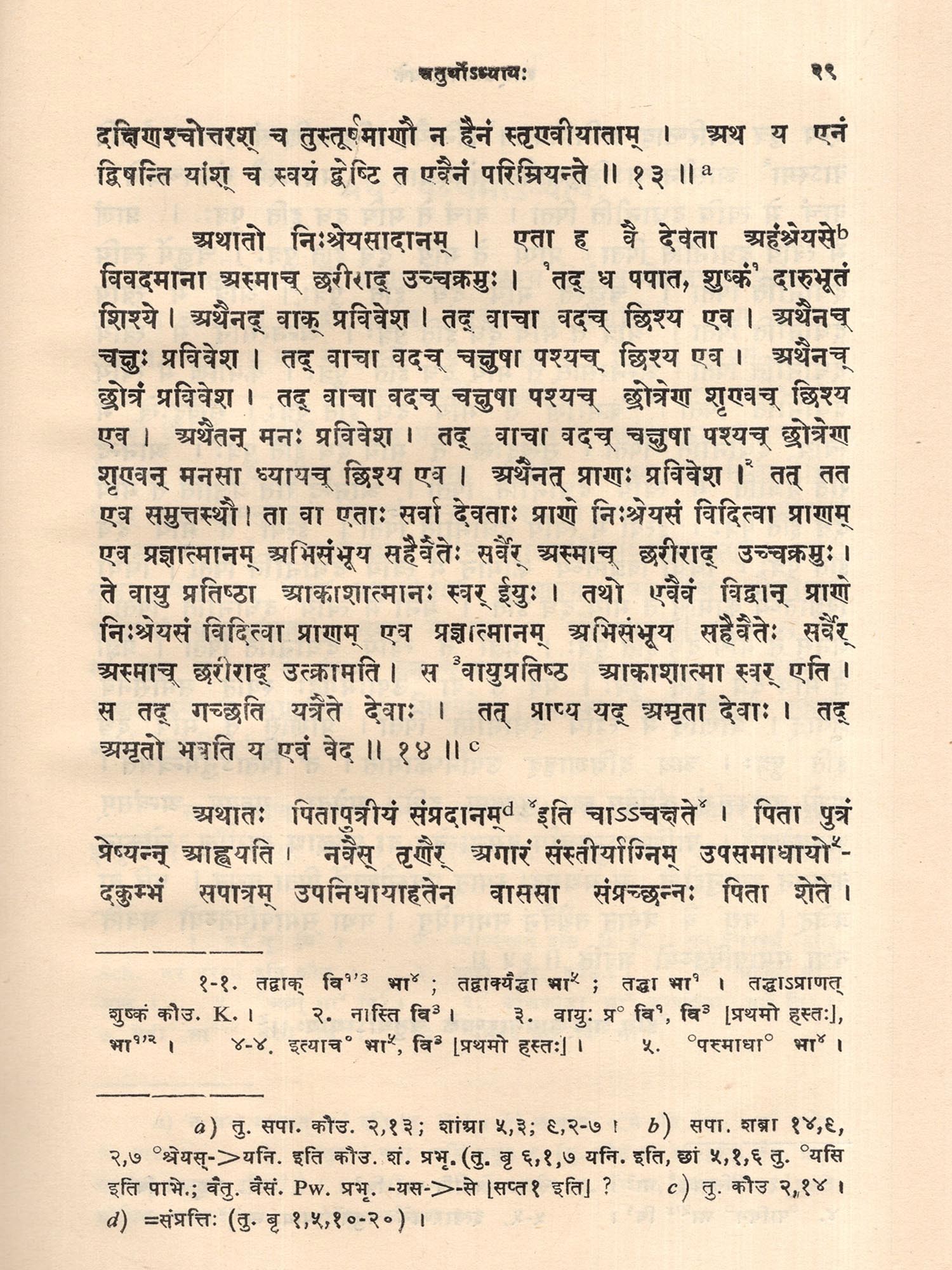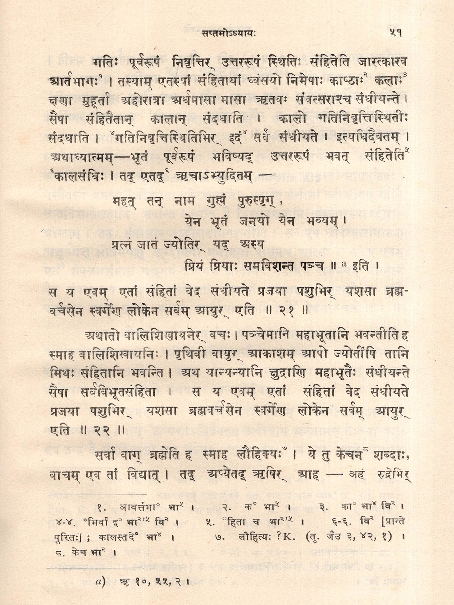 (vi) In the second section of the footnotes are given the meanings of uncommon words, the uncommon meanings of common words, documentation of passages parallel to textual passages in the present work, textual and grammatical notes and other relevant remarks. These footnotes would be extremely useful towards comparative studies, tracing the sources of passages etc.