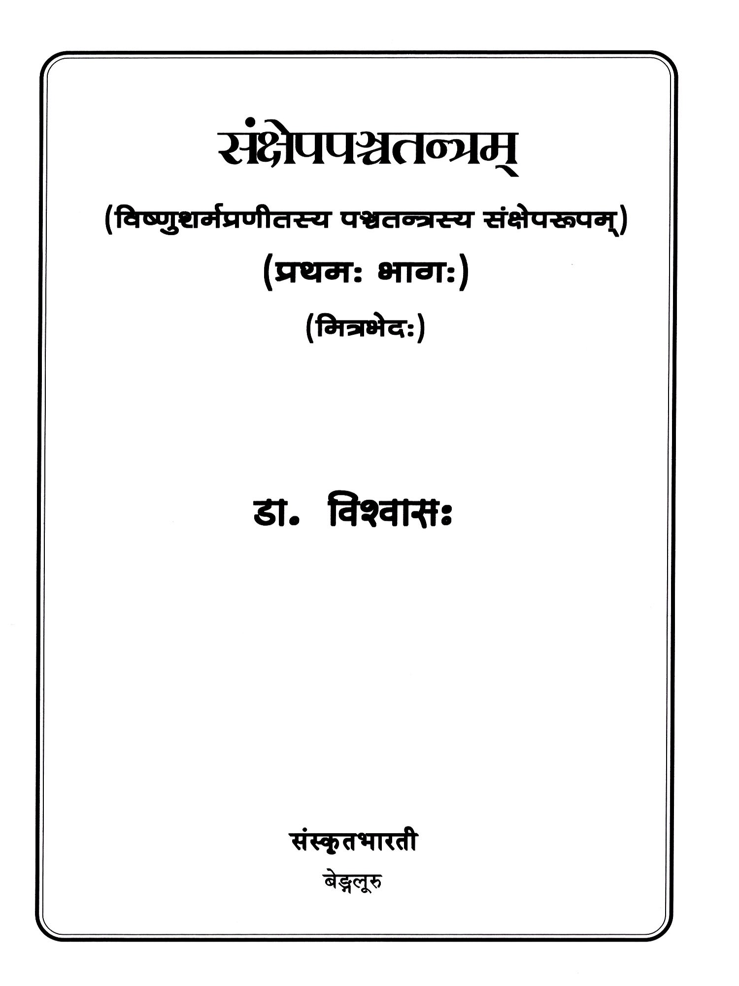 संक्षेपपञ्चतन्त्रम् (विष्णुशर्मप्रणीतस्य पञ्चतन्त्रस्य संक्षेपरूपम्): Sankhsepapanchatantram- 1st Part (Mitrabheda)
