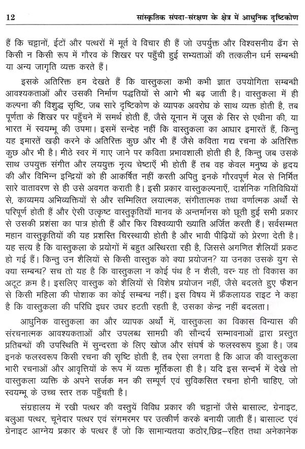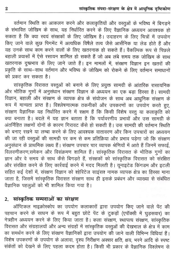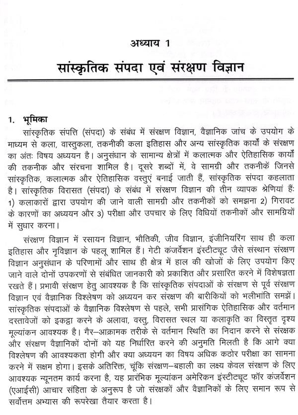 प्राचीन सास्कृतिक धरोहरों, स्मारकों एवं कलाकृत्तियों की दृष्टि से भारत विश्व के सम्पन्नतम राष्ट्रों में अग्रणी है। देश के इस विपुल पुरासंपदा को भावी पीढ़ी के लिए सुरक्षित रखना हमारा गुरुतर दायित्व है। दायित्व के निर्वाहन के लिए सांस्कृतिक विरासत की ज्ञान, उनके विघटन के कारण तथा ह्रास से बचने के उपाय जी जानकारी आवश्यक है। प्राकृतिक कारणों के इतर मानव कृत्य भी सांस्कृतिक संपदाओं को क्षति पहुंचाते है। सांस्कृतिक संपदाओं, प्राचीन भारतीय स्मारकों एवं पौराणिक कलाकृतियों के संरक्षण तथा सरक्षण की विभिन्न तकनीकीयों व वैज्ञानिक रखरखाव के बारे में व्याख्या करने वाली संकलनयुक्त राजभाषा हिंदी में लिखा जाने वाला यह प्रथम ग्रन्थ है। प्रस्तुत ग्रन्थ में फलक चित्र विषय की प्रासंगिकता के अनुरूप है। प्रस्तुत ग्रंथ का उद्देश्य प्राचीन सांस्कृतिक विरासत के रूप में प्राचीन स्मारकों, सांस्कृतिक सम्पदाओं के वैज्ञानिक संरक्षण एवं उत्तम रख-रखाव की विभिन्न तकनिकीयों से न केवल प्रबुद्ध नागरिकों, छात्र-छात्राओं, संरक्षण के क्षेत्र में कार्य कर रहे विशेषज्ञों एवं प्रशिक्षणार्थियों को अवगत कराना है अपितु इसके माध्यम से उनकी भागीदारी भी सुनिश्चित करना है। विश्व व्यापी विकसित संचार व्यवस्था ने आज विश्व के लोगों को आपस में इतना निकट ला दिया है कि समूचा विश्व एक परिवार अर्थात वसुधैव कुटुम्बकम्' लगने लगा है। सांस्कृतिक विरासतों की दृष्टि से देश की सीमाएं धूमिल पड़ गयी है और उनको किसी देश विशेष की ही विरासत न मानकर समूचे विश्व की धरोहर माना जाने लगा है।