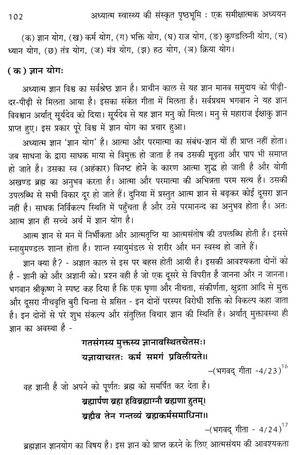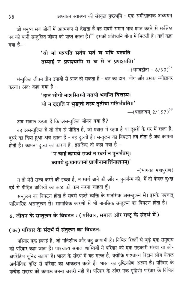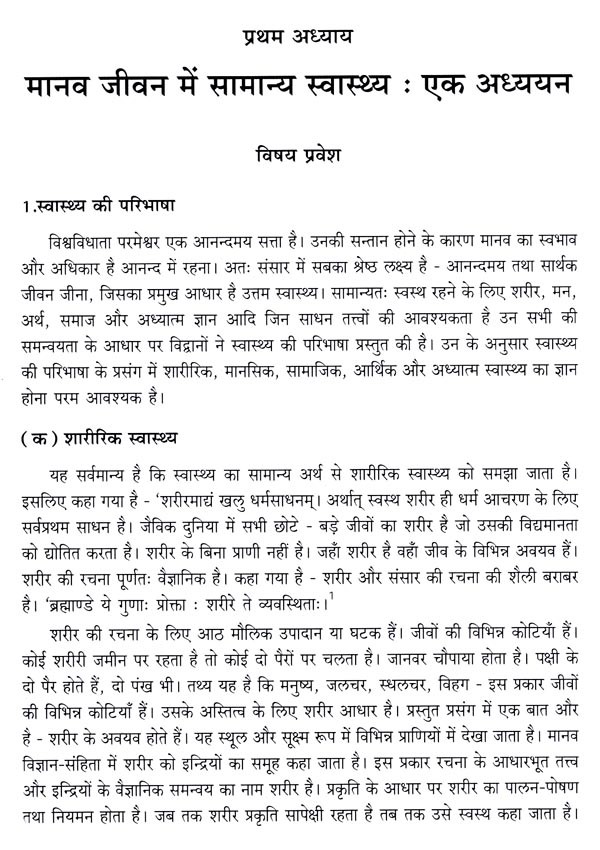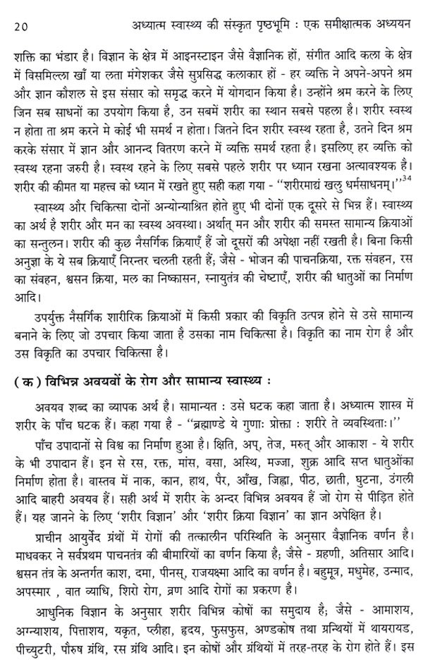 मानव सभ्यता के इतिहास में यह एक सुखद प्रसंग है कि भारत में देह, मन और आत्मा को बराबर महत्त्व दिया गया है। अदृष्ट को दृष्ट के रूप में संकल्पित करने का समस्त श्रेय भारतीय ऋषियों तथा संहिताकारों को जाता है जिह्नने दैहिक स्वास्थ्य के साथ-साथ मानसिक और आत्मिक स्वास्थ्य का भी अनुशीलन किया है।