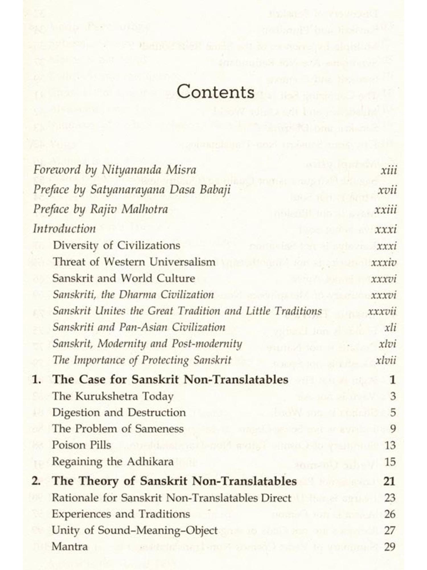I left after our first meeting, excited to share my work and to hear Rajiv's penetrating questions that would go on to refine my thinking with the pinpoint accuracy that he demanded. The first document I shared with him was a paper on achintya-bheda-abheda. He relished the paper, adding that it would be of immense help for his book. He invited me to help him in his work Being Different: An Indian Challenge to Western Universalism. 1 gladly obliged, as I felt life would be breathed back into Mother India. Our friendship cemented and we would meet during my teaching assignments at Rutgers. Over the years, we have recorded several videos on a variety of subjects. Three years ago, the idea of recording Sanskrit non-translatables arose. Rajiv had already introduced this concept in his book, Being Different. He proposed that we create fifty-four episodes on Sanskrit non-translatable.