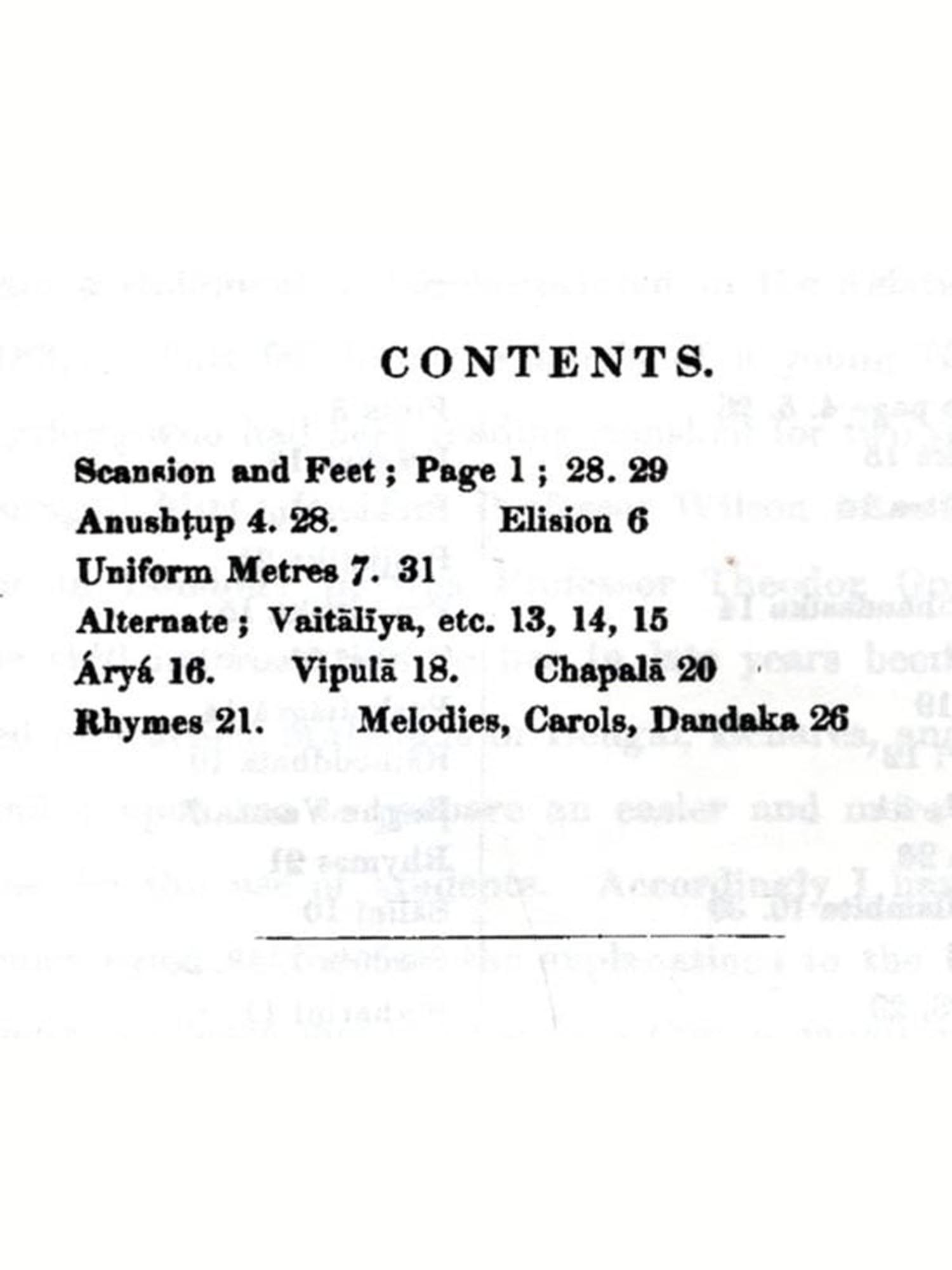 In 1827, at Madras, at the desire of the College Board, I printed a short account of Telugu and Sanskrit Prosody. Ten years after, when I was in London, the learned Professor Rosen, who had edited Colebrooke's Essays, requested me to prepare a statement which he printed in the Asiatic Journal for 1837. This fell into the hands of a young German at Konigsberg who had been reading Sanskrit for two years: and encouraged him. In 1855 Professor Wilson introduced him to me in London: he was Professor Theodor Goldstucker, whose skill in Sanskrit lore has in late years been acknowledged by learned brahmans in Bengal, Benares, and Lahore. He called upon me to prepare an easier and more complete volume for the use of students. Accordingly I have written the rules again, addressing the explanations to the beginner: who now can learn more in ten days than a pandit could have taught him in ten years.