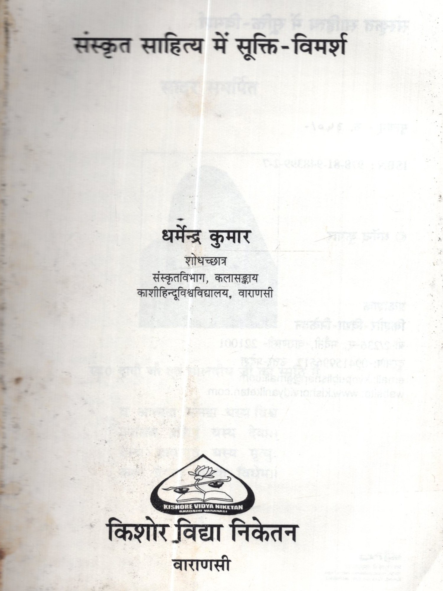 प्रसाद सूक्ति कोश: Prasad Sukti Kosha: Quotations from the Works of Jaishankar Prasad (An Old Book)