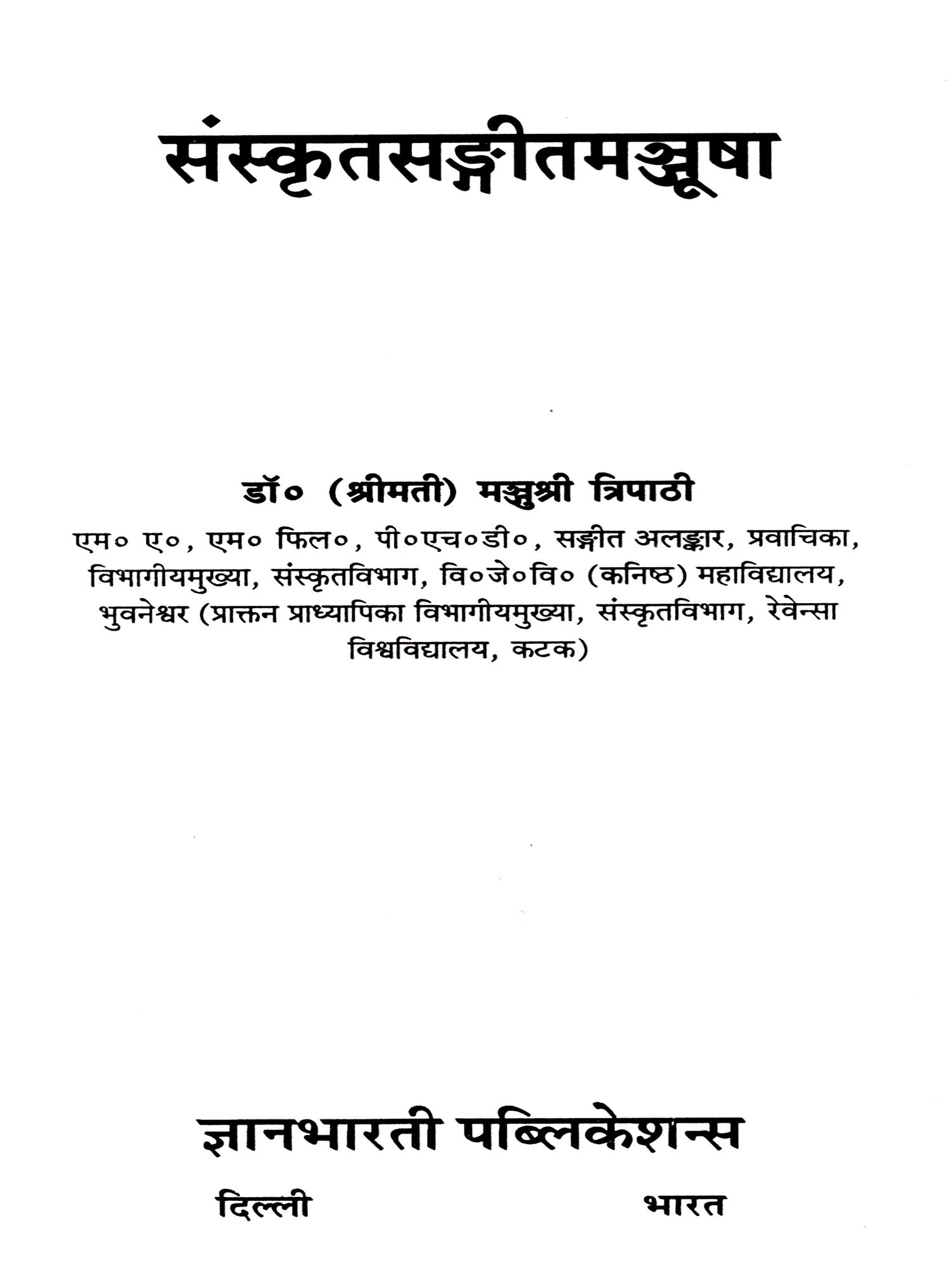 Samskrta Sangita Manjusa is a collection of research articles presented and appreciated in different seminars and conferences of National and State level. The attempt is made here to assemble twelve interdisciplinary research papers, pertaining to the field of Music and Sanskrit and vice versa. The effort has been made here, not only to explore and exhibit the musical elements present in Sanskrit literature, but also to find out sincerely, the hidden music talents of odia authors and musicologists in contributing and producing musical treatises of Sanskrit Language.