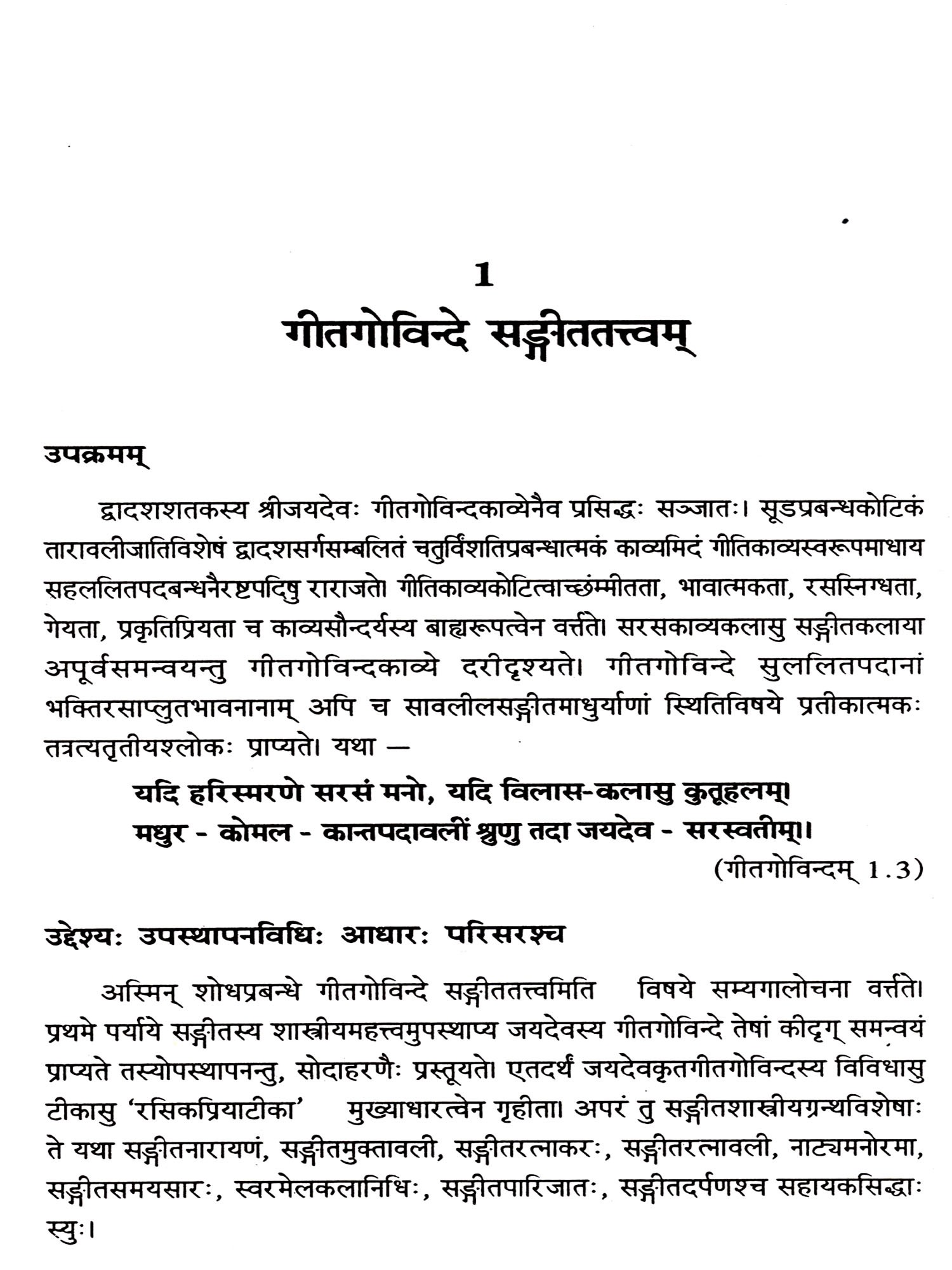 Thus, this book focuses in establishing the contribution of Sanskrit to the field of Music and vice versa. This will give way to the future researchers to do interdisciplinary research in both the fields. The strong relationship between Sanskrit and music is established here. The ancient musical treatises written in Sanskrit are the store house of musicology which needs to be probed into by our modern scholars with their knowledge in Sanskrit. So without the knowledge in Sanskrit, research in the field of music is not possible.
