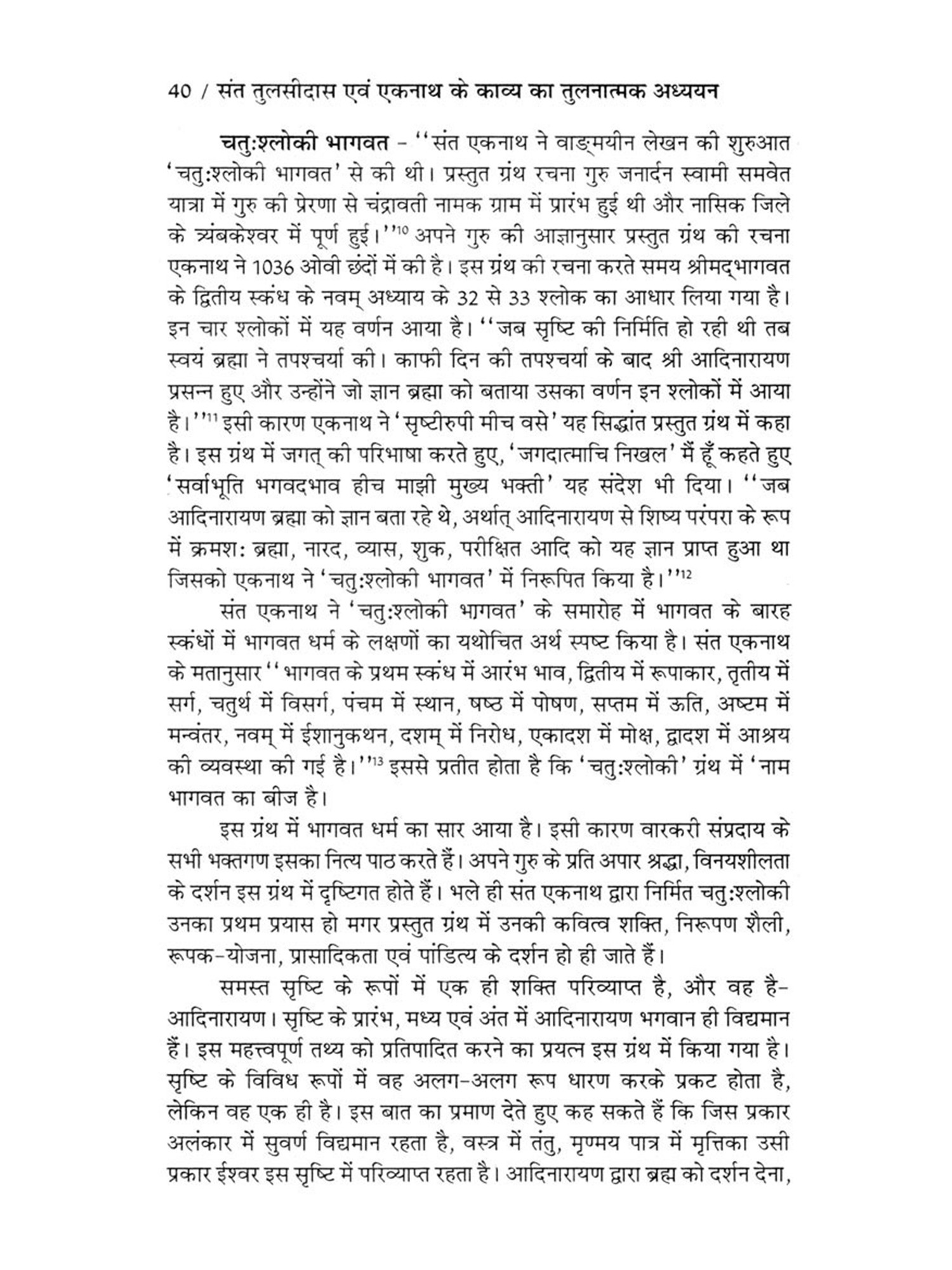 शोध कार्य का महत्त्व और उद्देश्य संत एकनाथ और संत तुलसीदास भारत की दो भाषाओं के मेधावी विचारक, विश्रुत कवि एवं श्रेष्ठ भक्त हैं। भारत की सांस्कृतिक चेतना के प्रवाह में उनका असाधारण योगदान है। दोनों लोकमंगल की चेतना के साकार रूप हैं। सत्य पक्ष और भक्ति से अनुप्राणित ये दोनों महाकवि अपने युग और समाज के प्रति जागरूक थे।