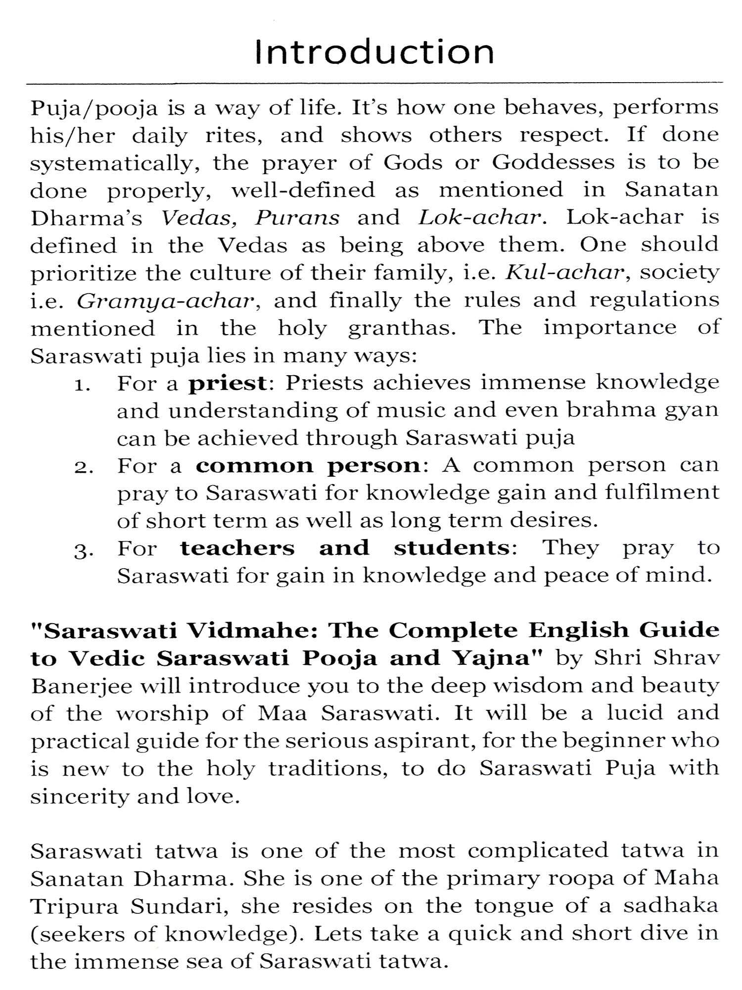 Discover the sacred wisdom of Saraswati Pooja and Yajna with this guide. Perfect for those struggling with complex Sanskrit shlokas, it offers easy-to-follow instructions, transliterated mantras, and explanations of traditional rituals. Featuring detailed steps, sacred chants, and illustrations, this book empowers you to perform Maa Saraswati's worship with devotion and understanding, whether you're a lifelong practitioner or new to the spiritual path.