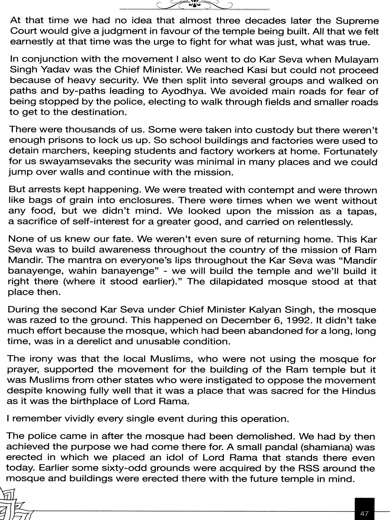 Social fervour and an abiding commitment to the community have been the paramount driving forces in everything I have done. In rendering service to the nation and to the society, three attributes have constantly anchored and guided me: a sense of purpose, unflinching values and the courage of conviction. I will consider it God's grace if I am able to pass on to the reader these three values of life through the book.